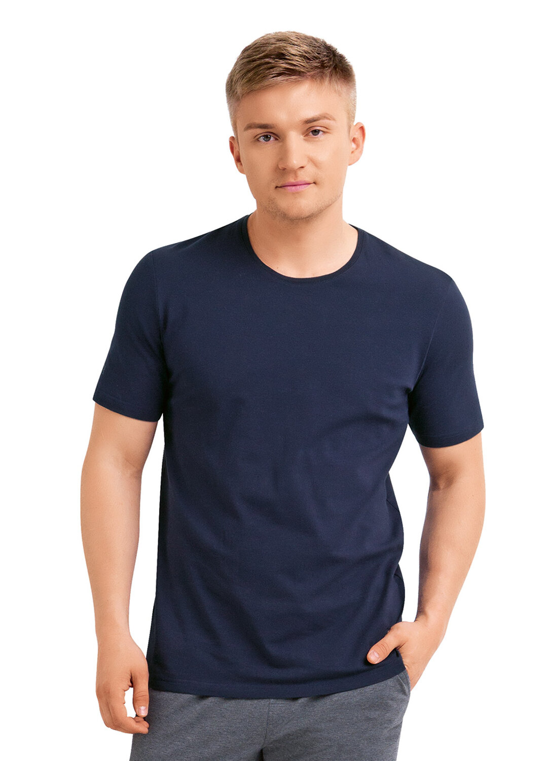 Базовая футболка свободного кроя с круглым вырезом горловины и коротким рукавом. Модель выполнена из 100% дыщащего хлопкового полотна. Универсальная вещь мужского гардероба для носки на каждый день.