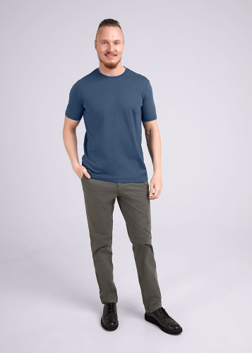 Базовая футболка свободного кроя с круглым вырезом горловины и коротким рукавом. Модель выполнена из 100% дыщащего хлопкового полотна. Универсальная вещь мужского гардероба для носки на каждый день.