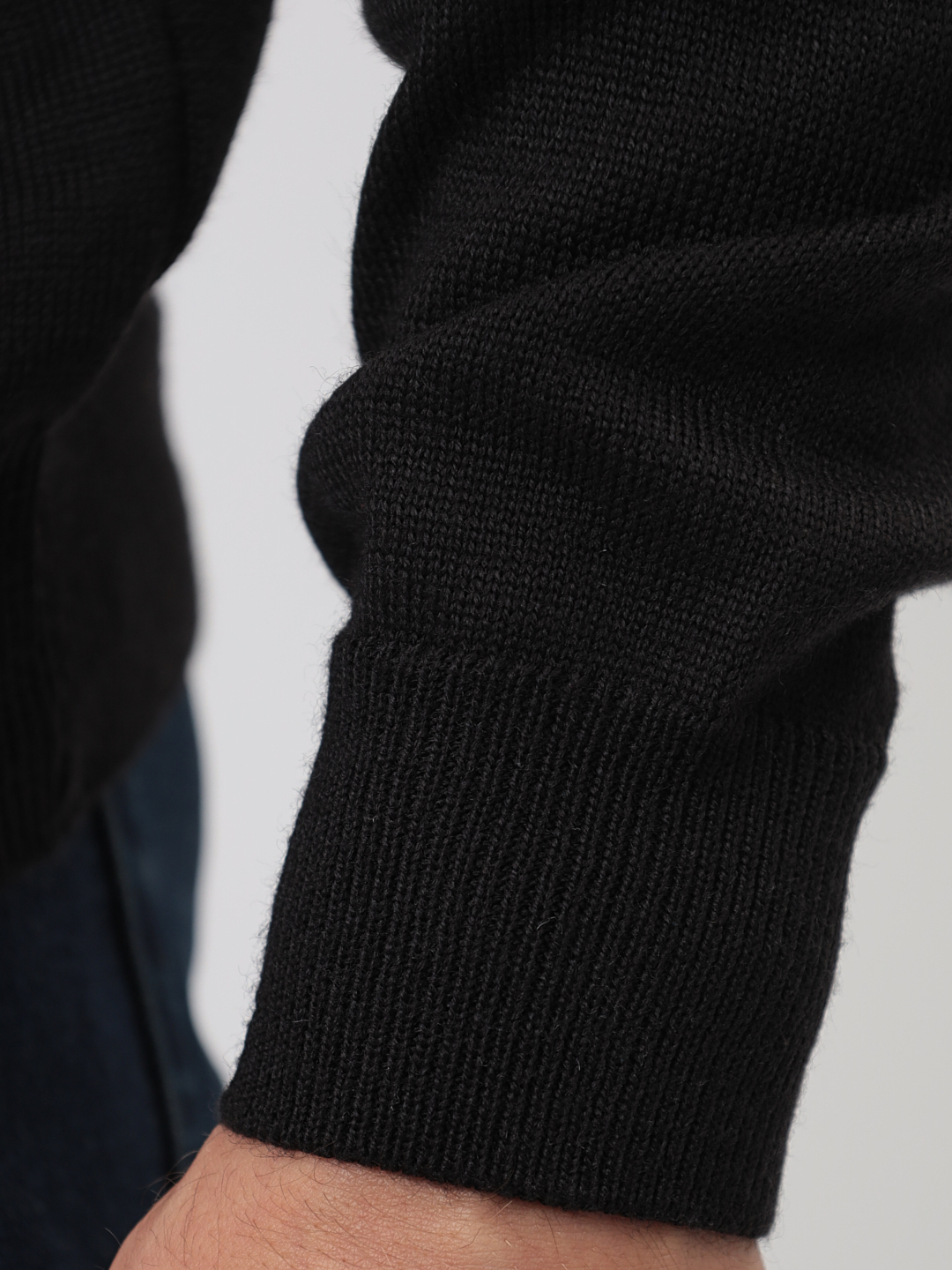 Цвет: Черный Рисунок: Трикотаж од..показатьнотонный Состав: 70% шерсть 30% акрил Модель: Классическая Ворот: Полугольф Силуэт: Прямой силуэт / Сlassic fitнотонный