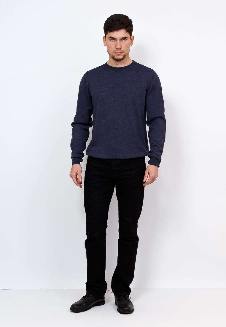 Цвет: Синий Рисунок: Трикотаж одн..показатьотонный Состав: 80% шерсть мериноса 20% акрил Модель: Классическая Ворот: Круглый Силуэт: Прямой силуэт / Сlassic fitотонный