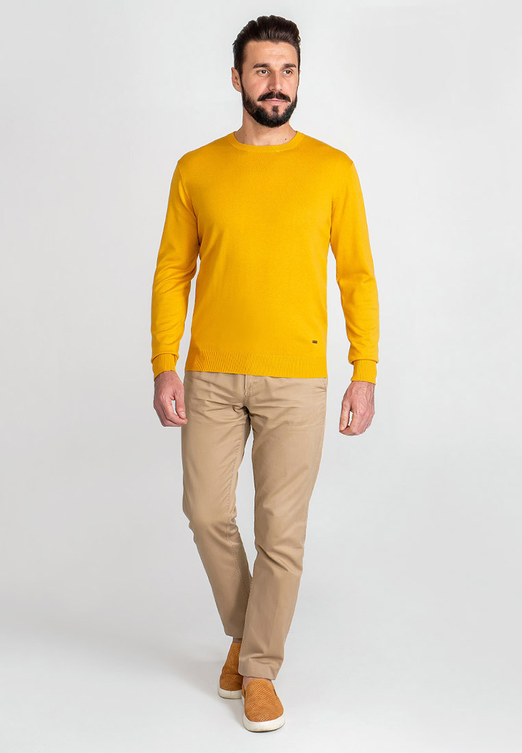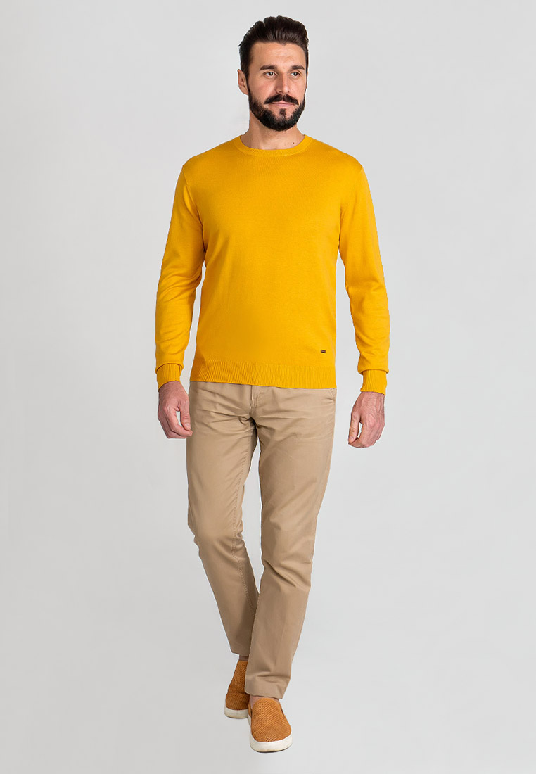Цвет: Желтый Рисунок: Трикотаж од..показатьнотонный Состав: 85% хлопок 15% акрил Модель: Классическая Ворот: Круглый Силуэт: Прямой силуэт / Сlassic fitнотонный