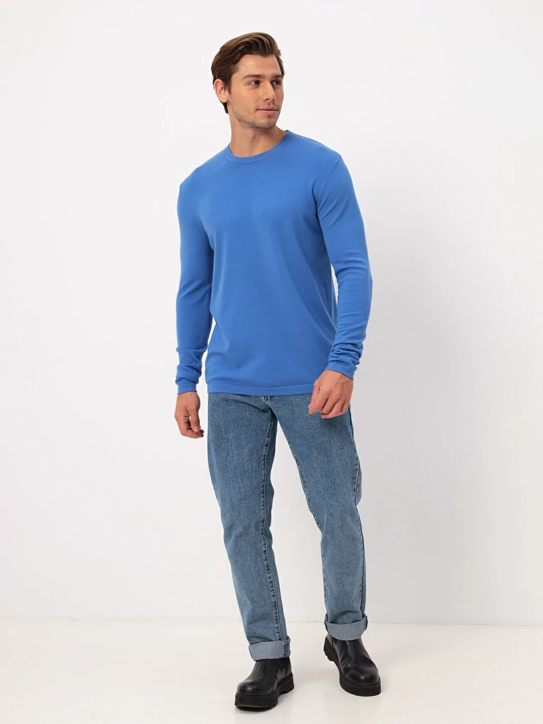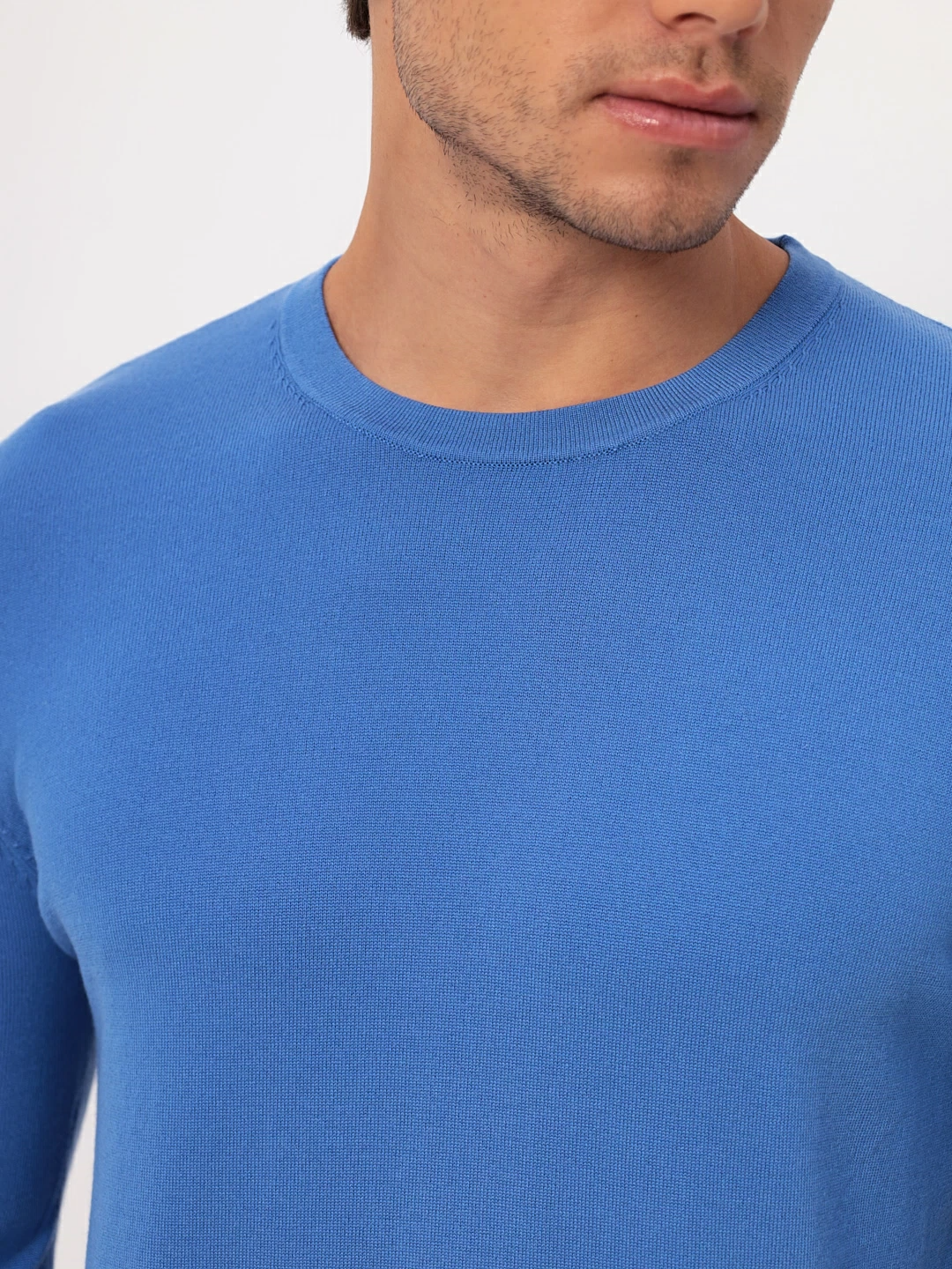 Цвет: Голубой Рисунок: Трикотаж с..показать отделкой Состав: 95% тенсель, 5% шёлк Модель: Классическая Ворот: Круглый Силуэт: Прямой силуэт / Сlassic fit отделкой