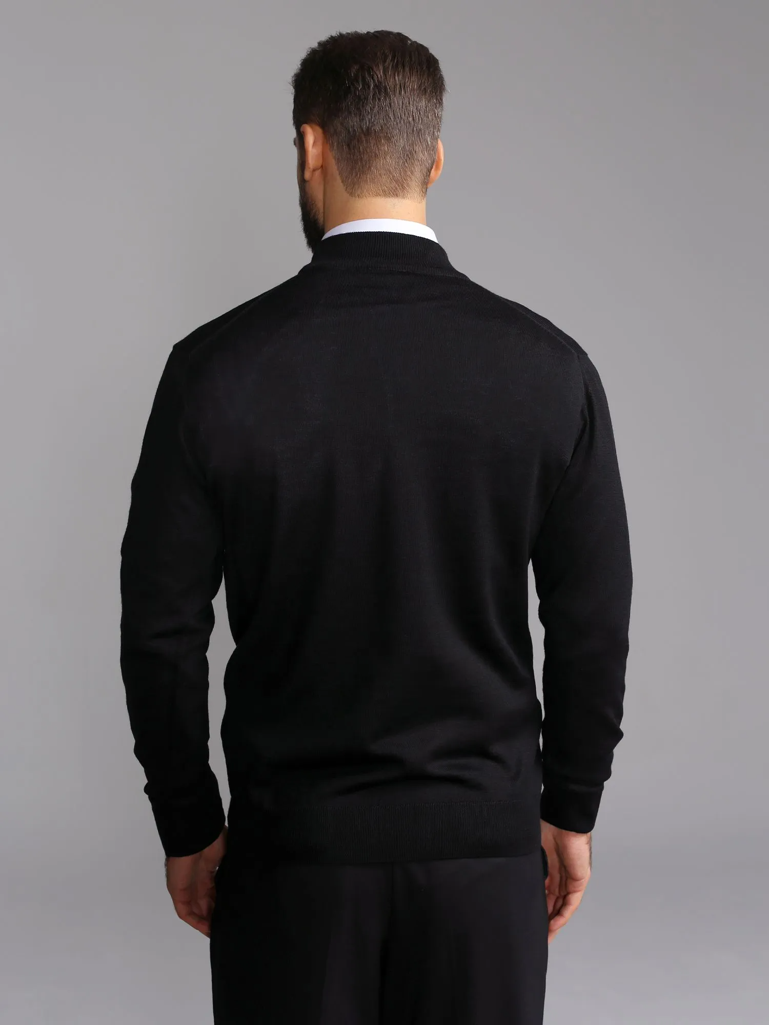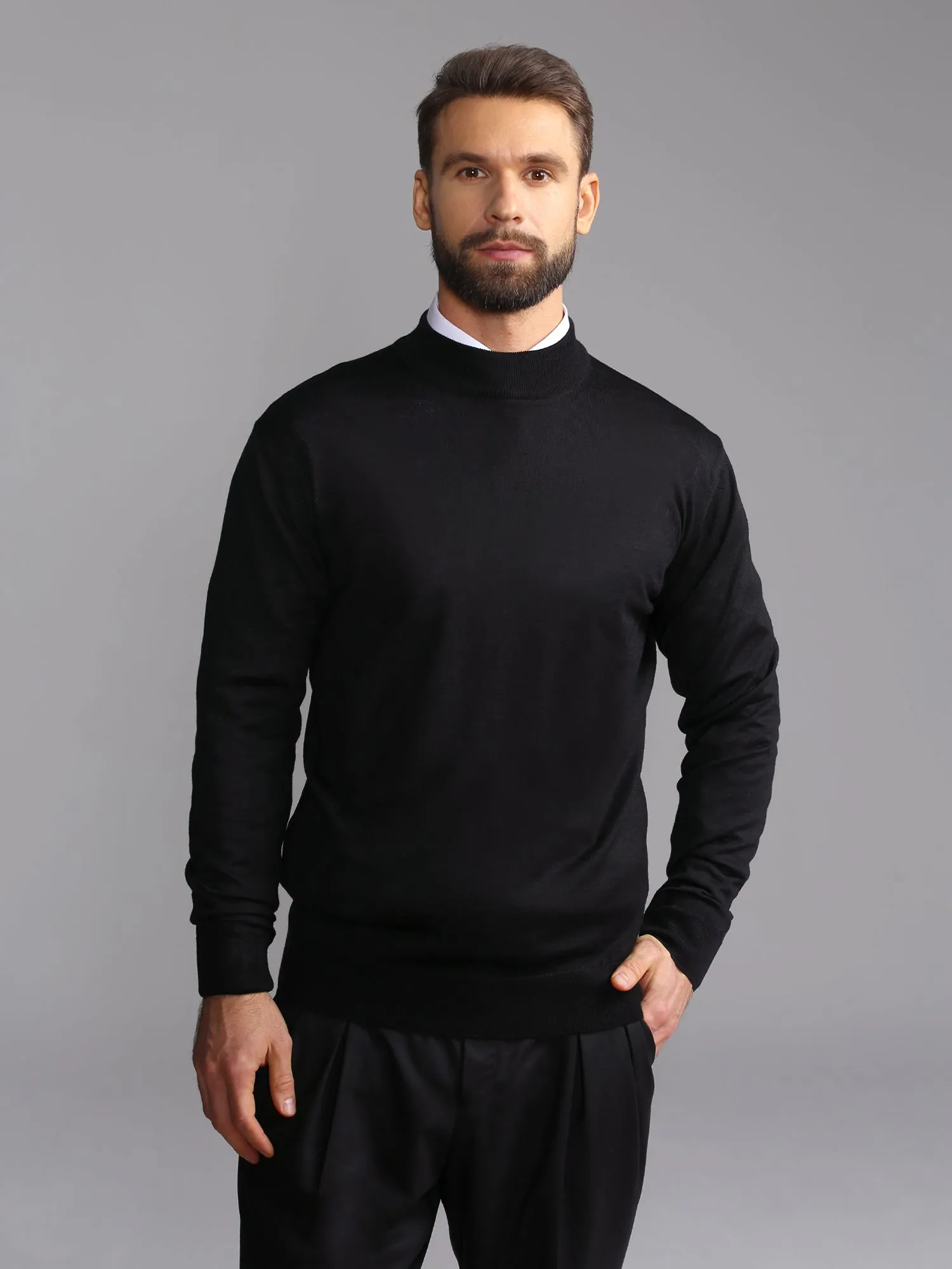 Цвет: Черный Рисунок: Трикотаж од..показатьнотонный Состав: 80% шерсть мериноса 20% акрил Модель: Классическая Ворот: Полугольф Караман: отсутствует Силуэт: Прямой силуэт / Сlassic fitнотонный