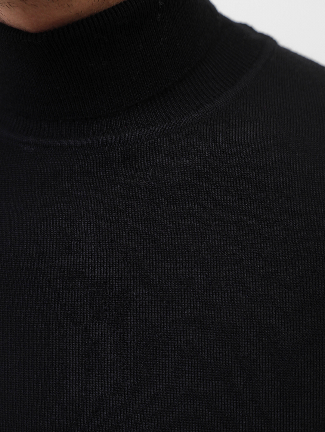 Цвет: Черный Рисунок: Трикотаж од..показатьнотонный Состав: 80% шерсть мериноса 20% акрил Модель: Классическая Ворот: Гольф Силуэт: Прямой силуэт / Сlassic fitнотонный