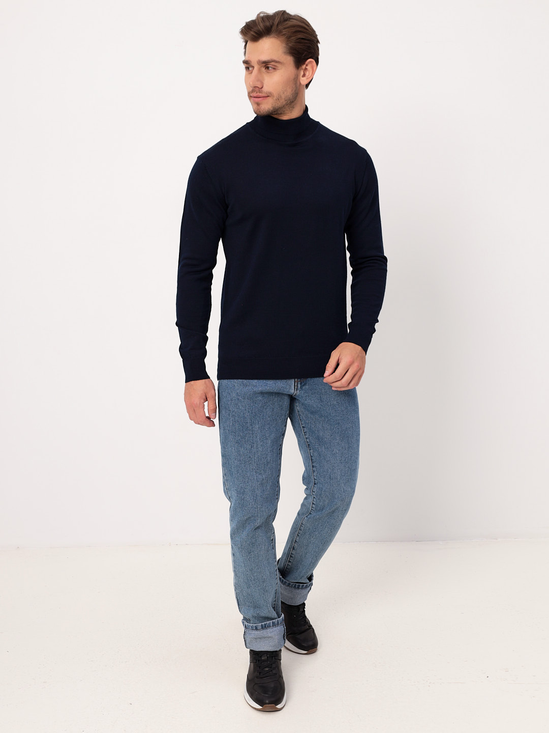 Цвет: Синий Рисунок: Трикотаж одн..показатьотонный Состав: 80% шерсть мериноса 20% акрил Модель: Классическая Ворот: Гольф Силуэт: Прямой силуэт / Сlassic fitотонный