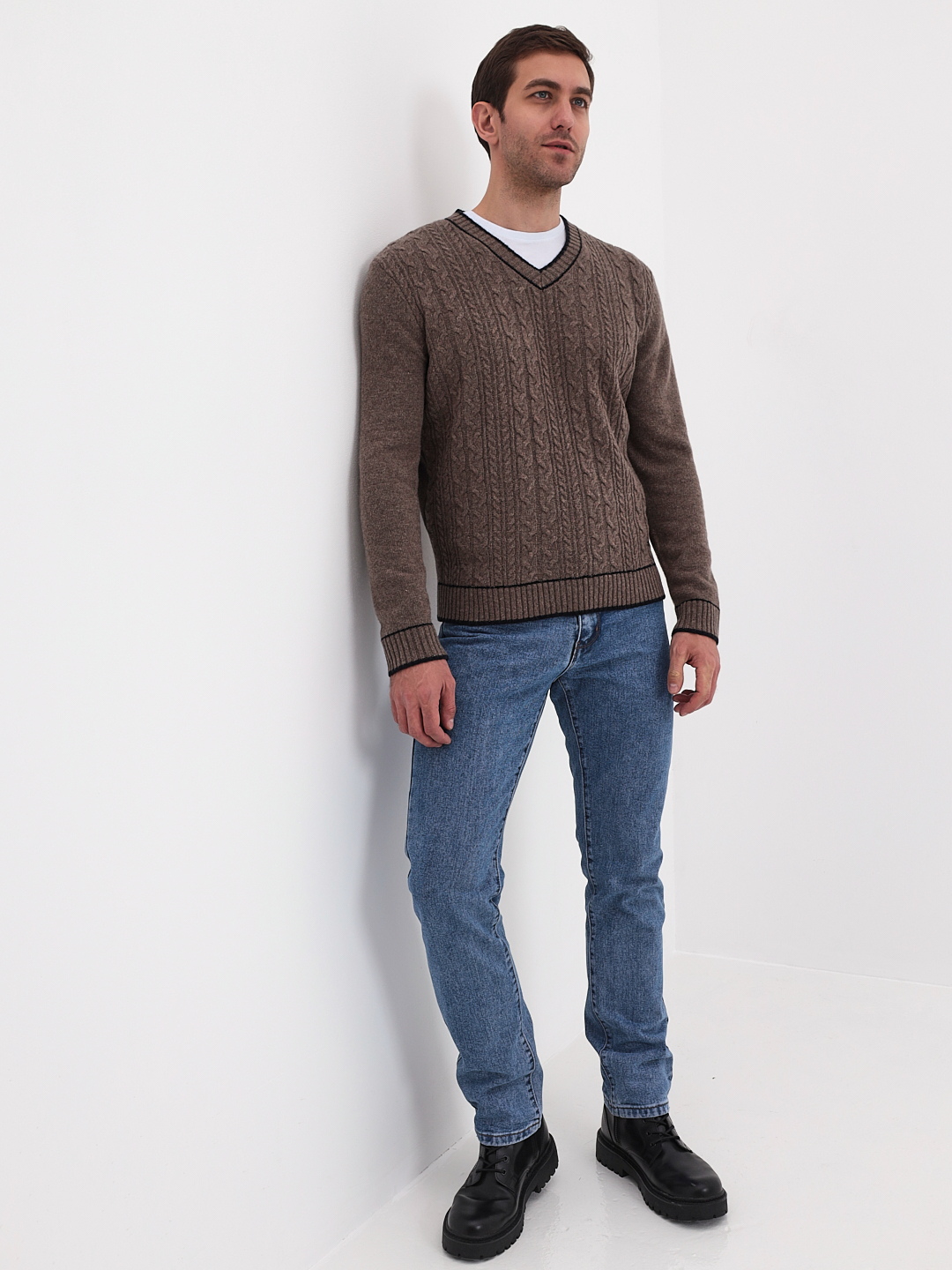 Джемпер мужской GREG G124-07-косы (кофе)