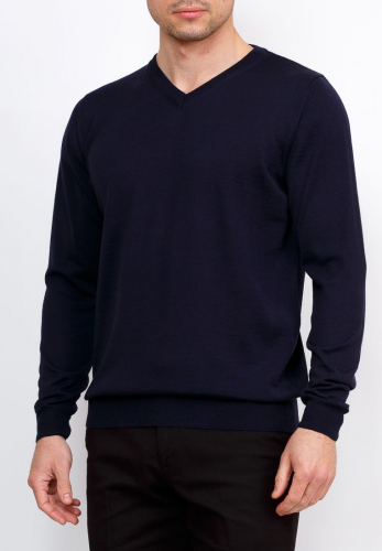 Цвет: Синий Рисунок: Трикотаж одн..показатьотонный Состав: 80% шерсть мериноса 20% акрил Модель: Классическая Ворот: V-вырез Силуэт: Прямой силуэт / Сlassic fitотонный