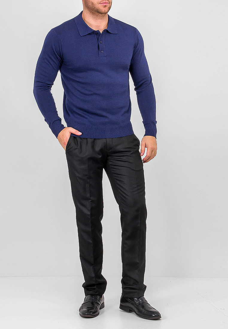 Цвет: Синий Рисунок: Трикотаж одн..показатьотонный Состав: 50% шерсть мерсериз., 50% акрил Модель: Классическая Ворот: Поло на пуговицах Силуэт: Прямой силуэт / Сlassic fitотонный