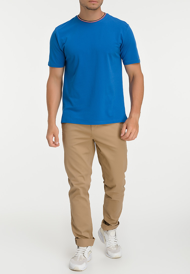 Цвет: Синий Рисунок: Однотон с фа..показатьктурой Состав: 95% хлопок 5% вискоза Модель: Полуприлегающая Ворот: Круглый Силуэт: Полуприталенный силуэт / Regular fitктурой