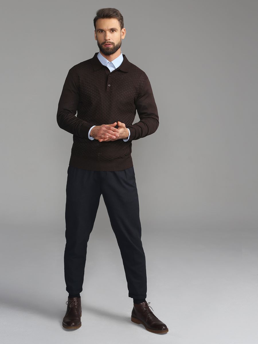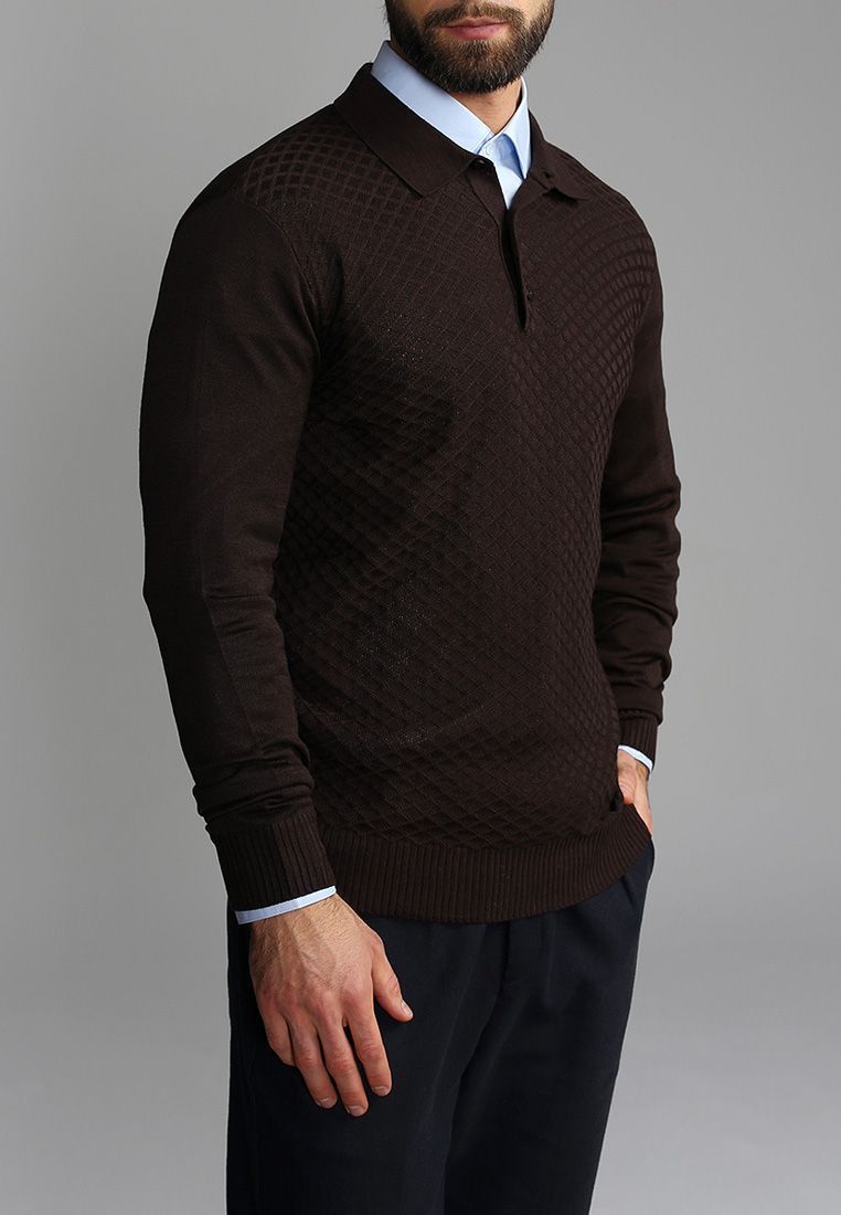 Джемпер мужской с воротником поло GREG G128-12-ромб F (корич.)