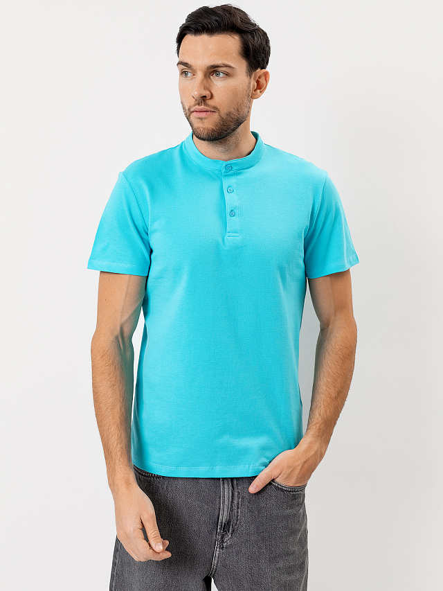 Стильная футболка мужская поло с оригинальным воротником-стойкой и удобной застежкой на 3 пуговицы. Благодаря лаконичному дизайну, прямому силуэту и комфортной длине до середины бедер она наверняка станет любимой в гардеробе, ведь отлично подходит практически ко всему. Рекомендуем!