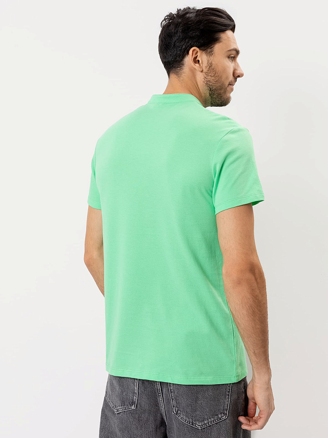 Стильная футболка мужская поло с оригинальным воротником-стойкой и удобной застежкой на 3 пуговицы. Благодаря лаконичному дизайну, прямому силуэту и комфортной длине до середины бедер она наверняка станет любимой в гардеробе, ведь отлично подходит практически ко всему. Рекомендуем!