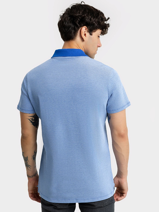 Джемпер-поло светло-голубого оттенка с синим воротником для мужчин