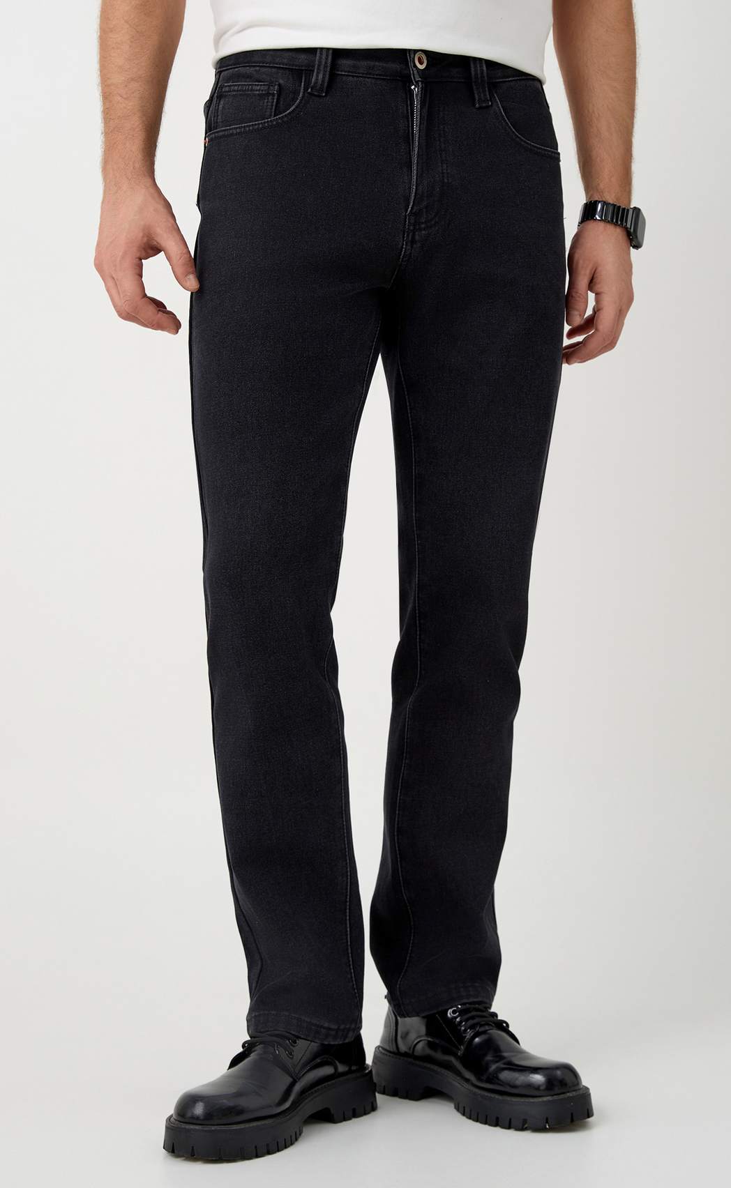 Однотонные джинсы мужские утепленные зимние на флисе от бренда Primm. Джинсы мужские УТЕПЛЕННЫЕ зимние выполнены из высококачественного хлопка с небольшим добавлением эластана для комфорта, внутренняя сторона джинсы из мягкого флиса c шелковистым, приятным на ощупь ворсом. Мужские классические джинсы из денима с пятью карманами, застежка на молнию и пуговицу, удобная средняя посадка, прямой крой, пояс с изнаночной стороны из эластичной резинки, которая обеспечивает комфорт в носке. Джинсы мужские окрашены натуральными, не агрессивными красителями, которые экологичны и безопасны. Благодаря составу (90% хлопок, 8% полиэстер, 2% эластан) джинсы после стирки не садятся, а после длительного ношения не вытягиваются. Качественный материал, широкая размерная сетка и прямой крой делают эти джинсовые брюки максимально комфортными и приятными к телу. Классические джинсы мужские, утепленные флисом, идеальное решение для холодного времени года, особенно в зимнее время. Длина внутреннего шва 80 см для для всех размеров. Такая длина подойдёт на рост 176-182 см. Ширина брючины от 17 см до 19,5 см.