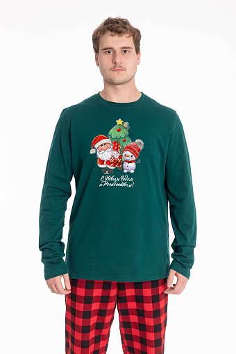 Лонгслив с новогодним принтом выполнен из хлопкового полотна. Материал приятен к телу, создает комфорт и хорошую воздухопроницаемость. Классический крой с длинным рукавом и круглым вырезом горловины обеспечивает удобную посадку и свободу движений. Отличный выбор для создания праздничного настроения и комфортных повседневных образов.