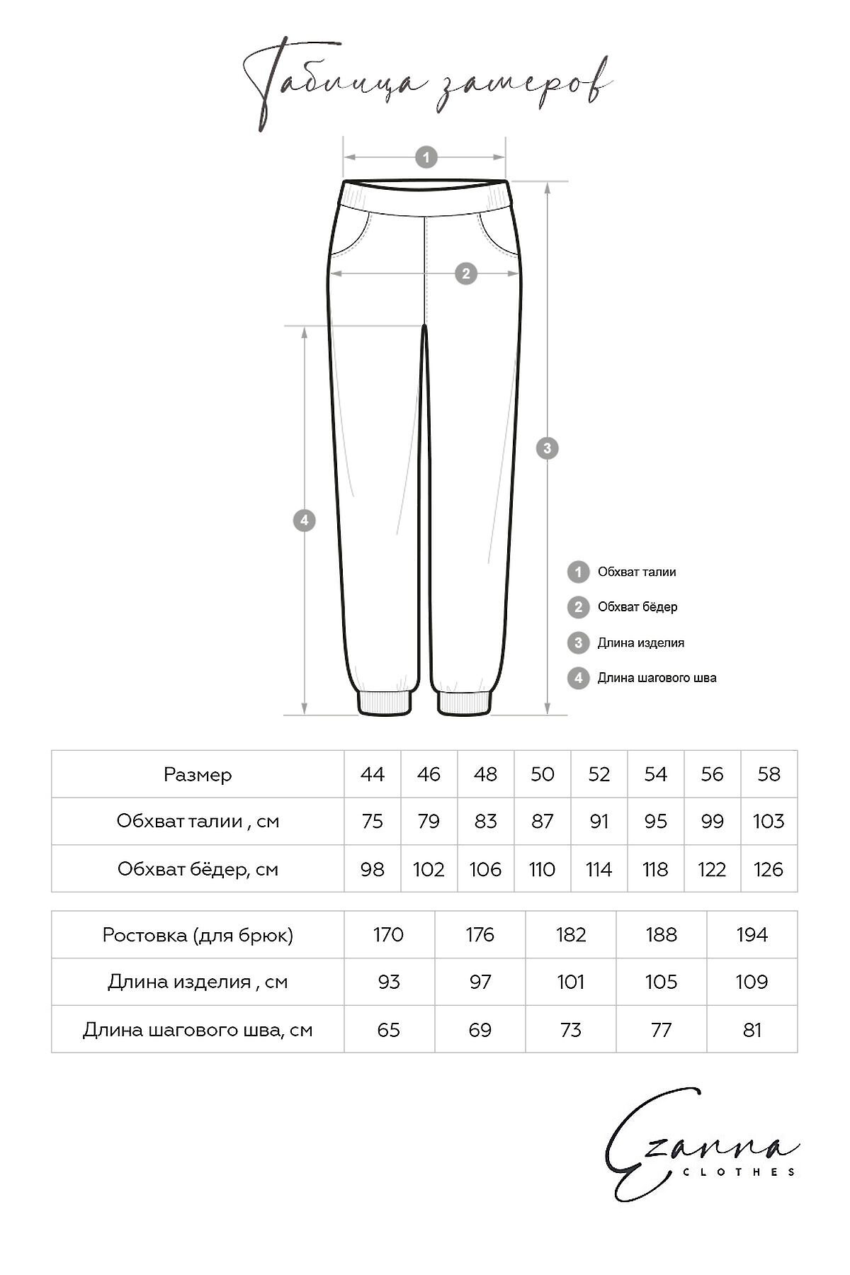 Универсальные трикотажные брюки из высококачественного хлопкового полотна премиум класса компакт пенье - футер 3х-нитка с начесом. Идеальны в демисезон и зимний период. Пояс выполнен из эластичного фактурного материала, низ брюк на манжете. Удобные боковые карманы и именной шеврон с логотипом Ezanna.