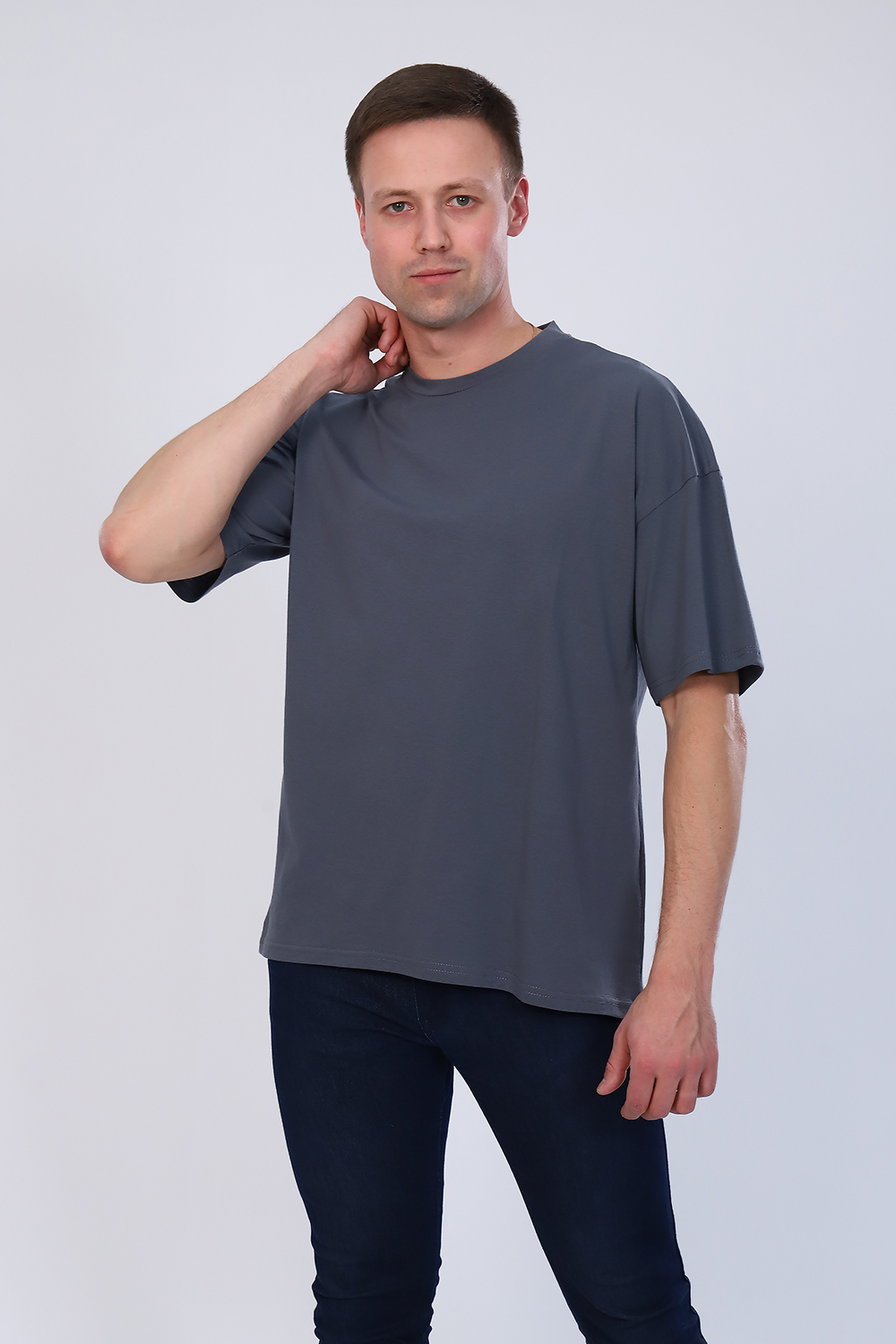 Футболка мужская хлопковая свободного кроя оверсайз прекрасно дополнит и классический образ, и спортивный лук! Прямой силуэт, спущенный, втачной рукав, горловина обработана обтачкой из основной ткани. Горловина спинки внутри усилена надстрочной планкой из кулирки. Низ изделия и рукава обработаны швом в подгибку.