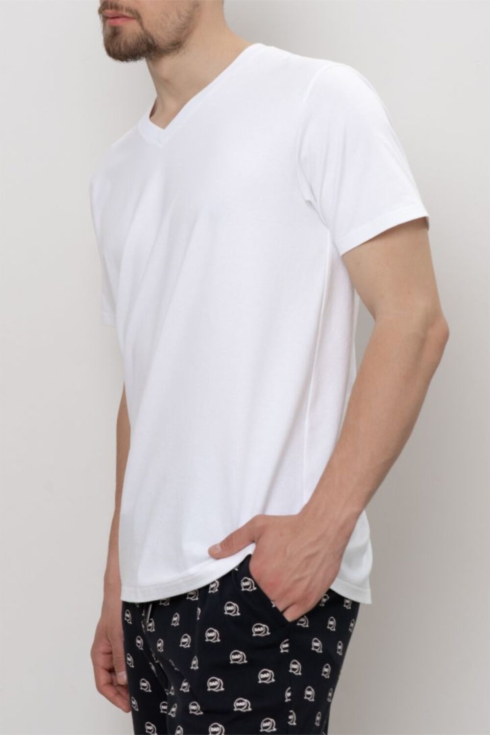 Футболка свободного прилегания с коротким рукавом и V–образным вырезом горловины. Модель представлена в 3 - х цветовых решениях. Модель дополнит образ к шортам и брюкам данной коллекции, а так же любым поясным изделиям из личного гардероба."