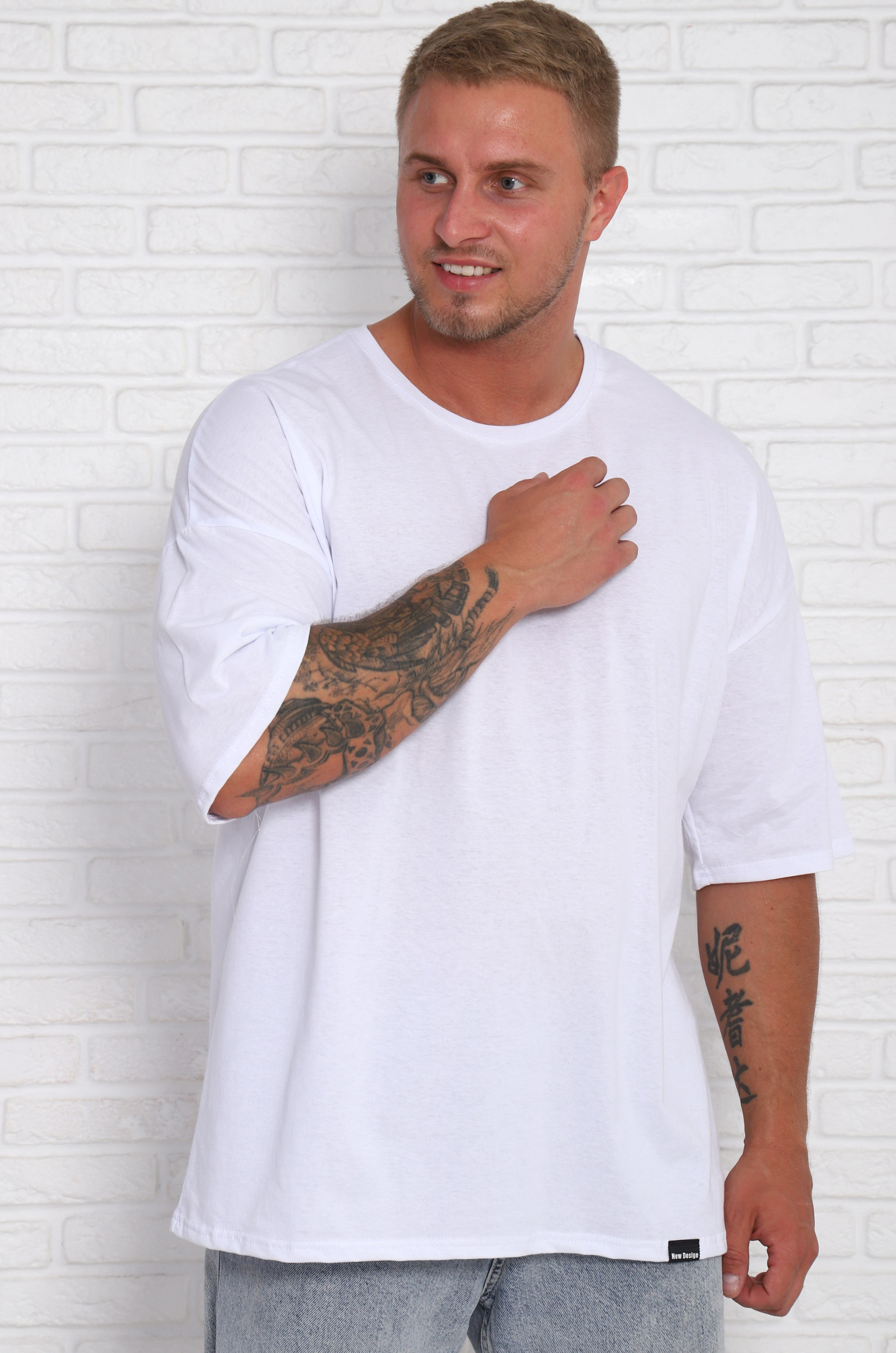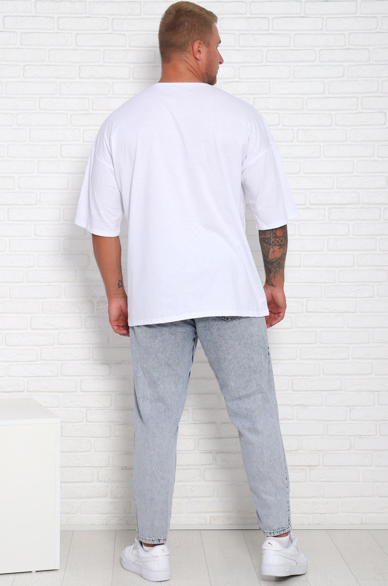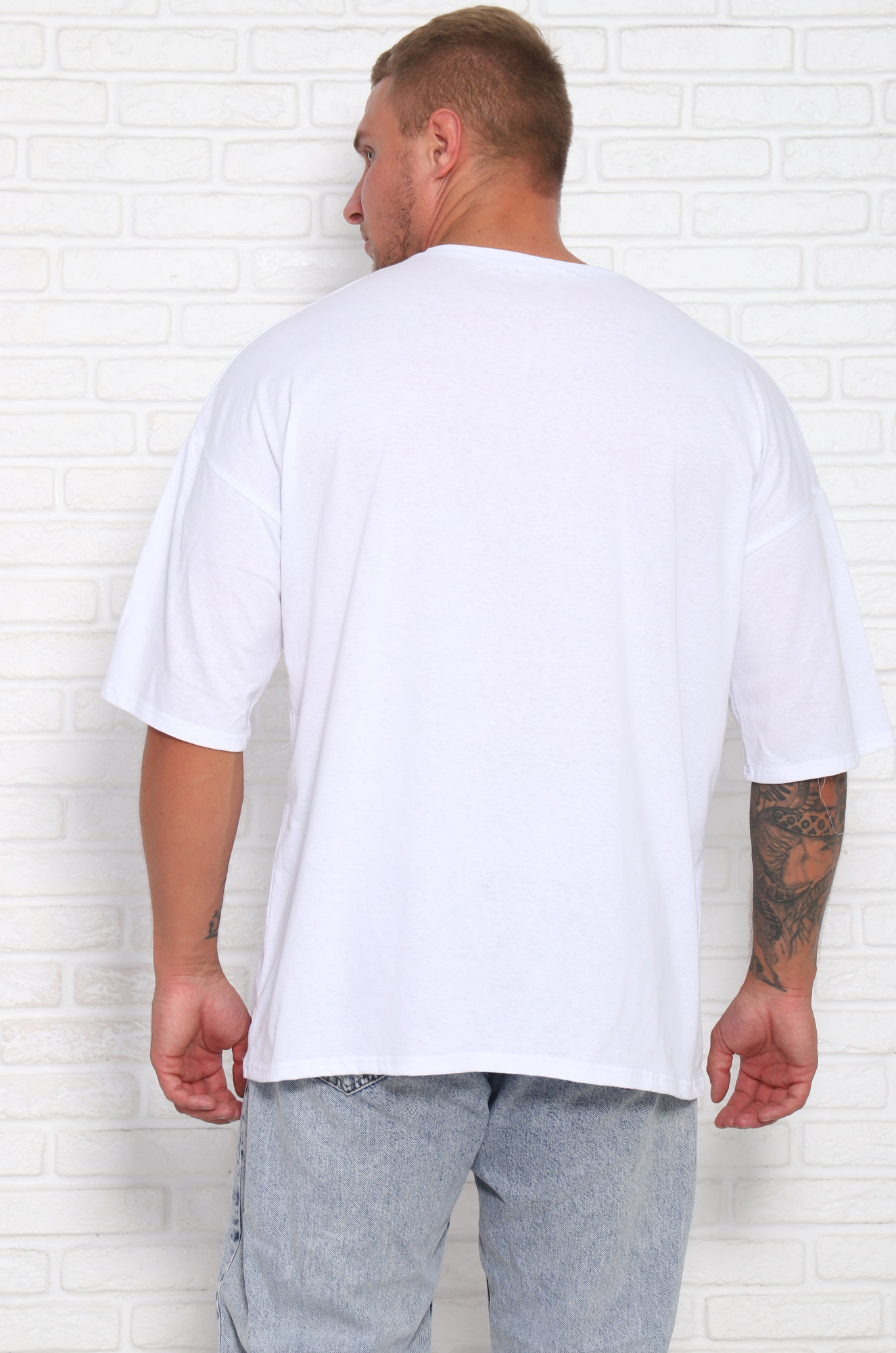Футболка мужская однотонная в стиле oversaiz. Горловина изделия обработана рибаной. Рукав втачной удлиненный. Выраженное спущенное плечо. Данная модель может использоваться как повседневная летняя и домашняя одежда, так и трендовая вечерняя вещь. В изготовлении футболок, используется трикотажное кулирное полотно, состоящее из 100% хлопка, плотностью 150-160  г/м2.