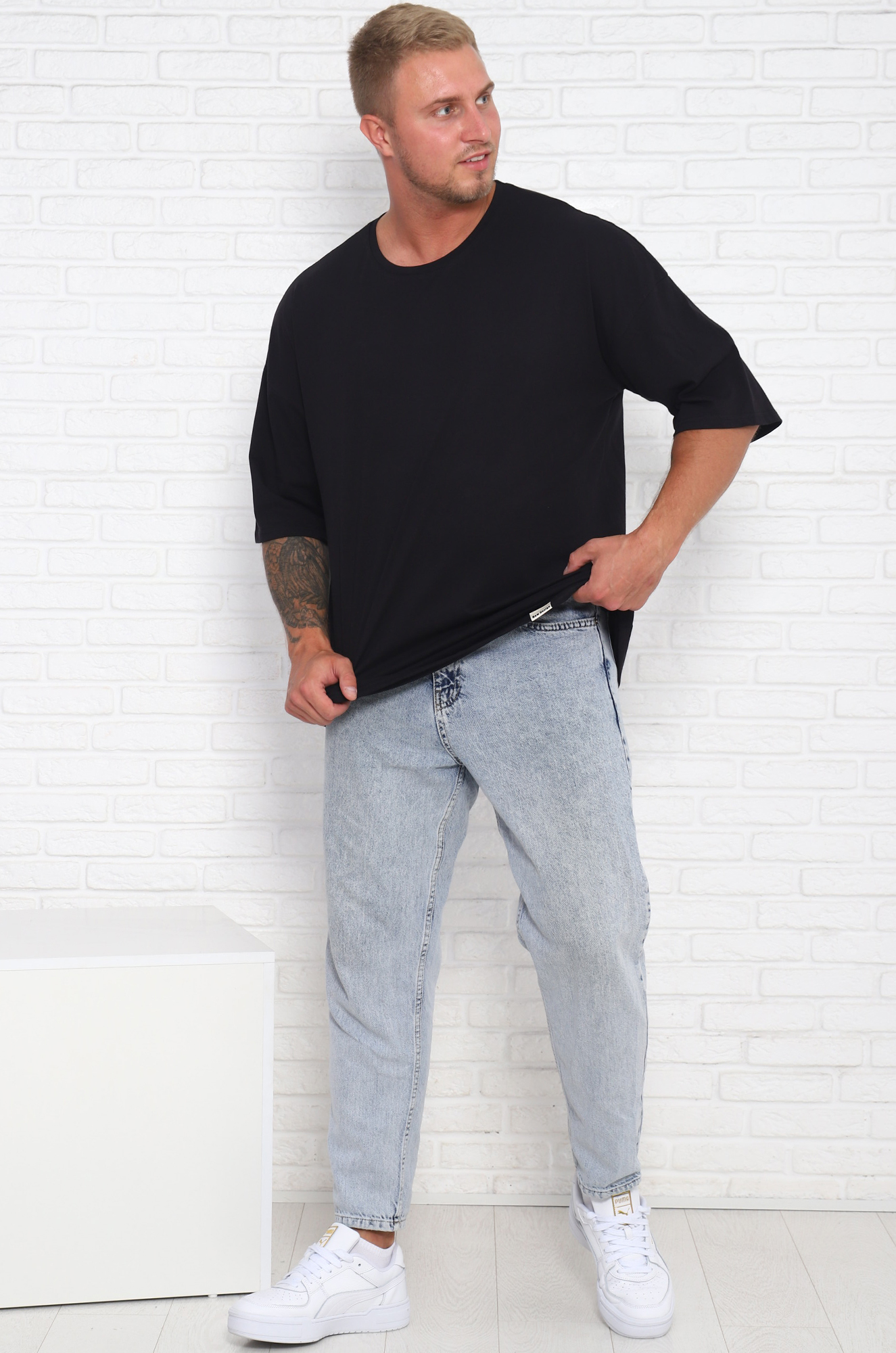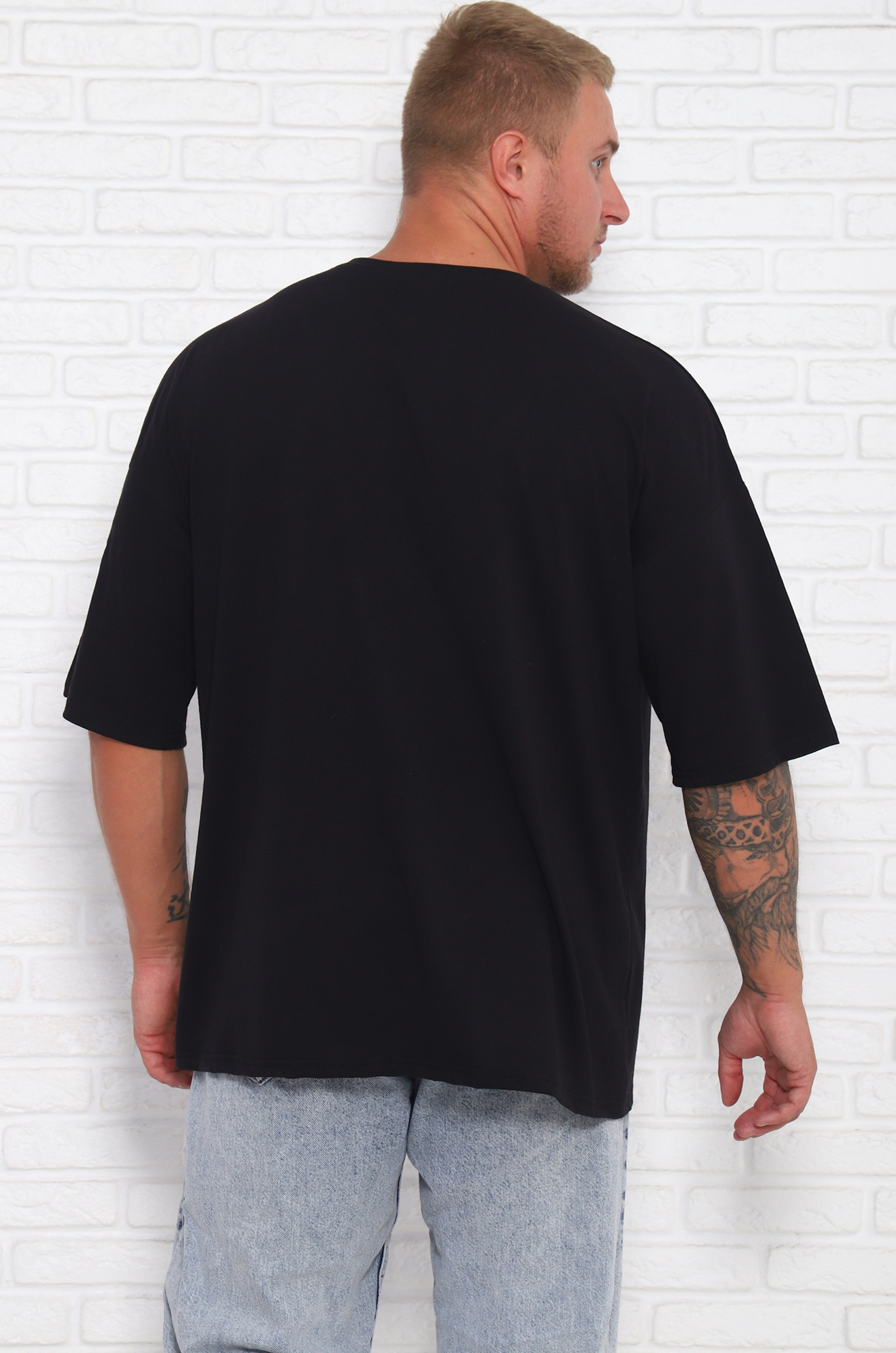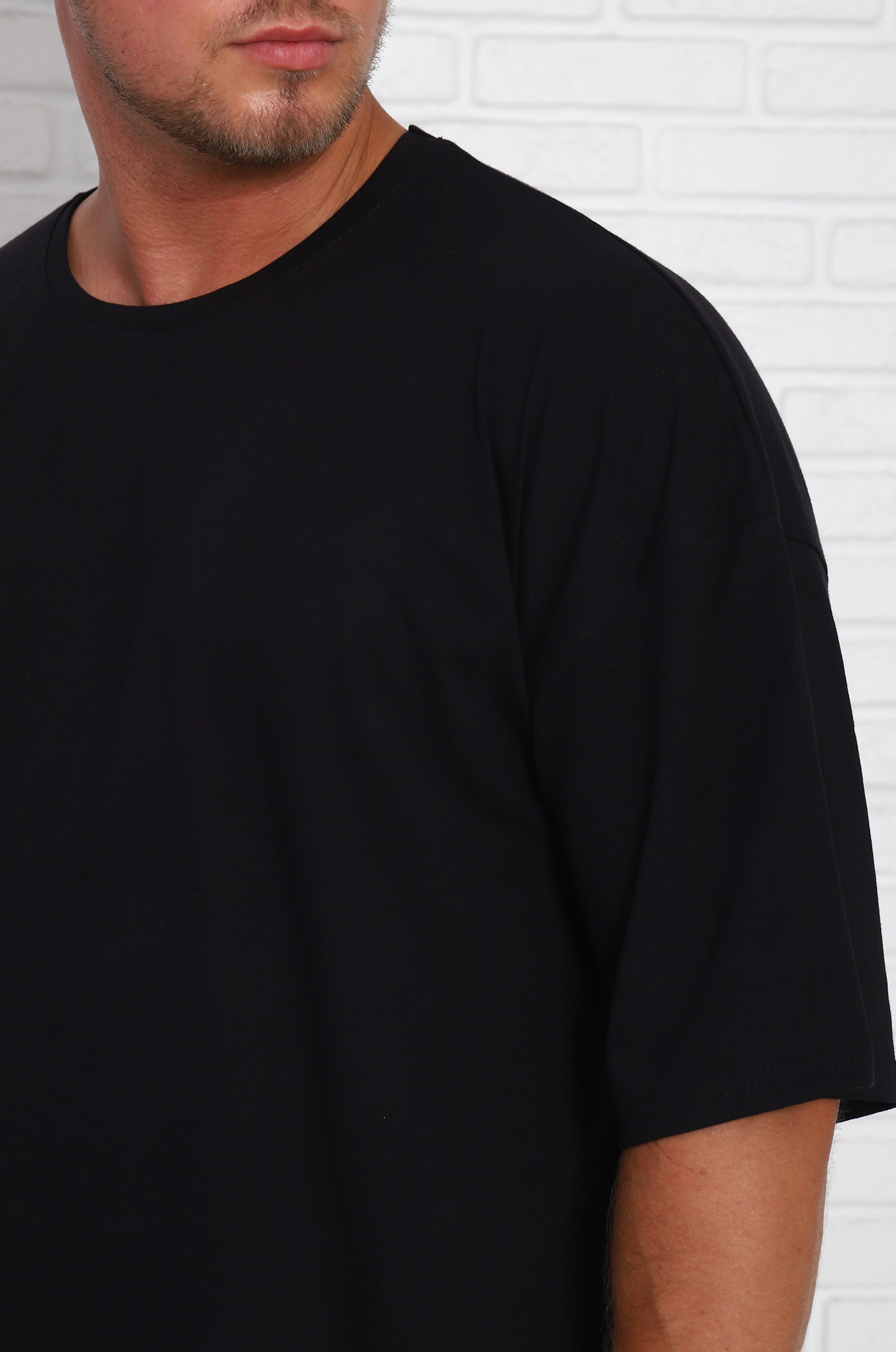 Футболка мужская однотонная в стиле oversaiz. Горловина изделия обработана рибаной. Рукав втачной удлиненный. Выраженное спущенное плечо. Данная модель может использоваться как повседневная летняя и домашняя одежда, так и трендовая вечерняя вещь. В изготовлении футболок, используется трикотажное кулирное полотно, состоящее из 100% хлопка, плотностью 150-160  г/м2.