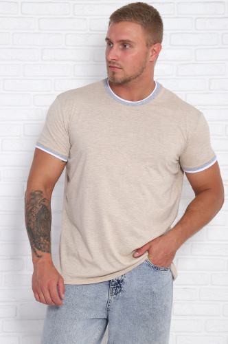 Мужская однотонная футболка прямого кроя, рукав втачной. Модель смотрится стильно за счёт оригинального контрастного оформления горловины и на рукавах. Отличный вариант на каждый день!
