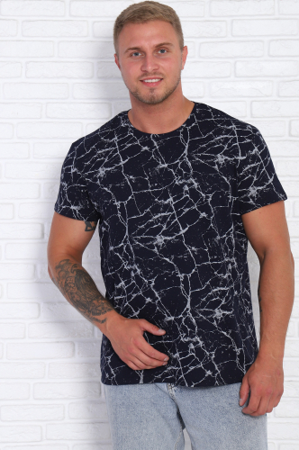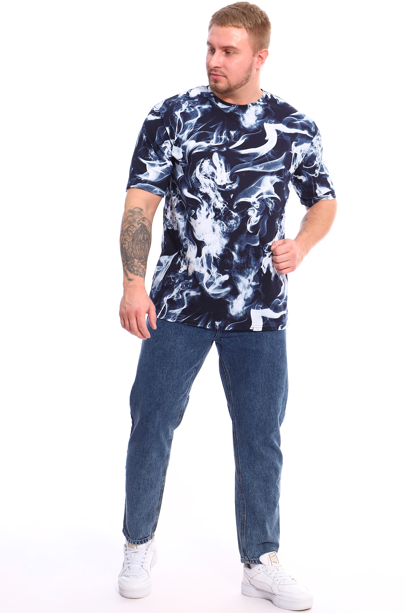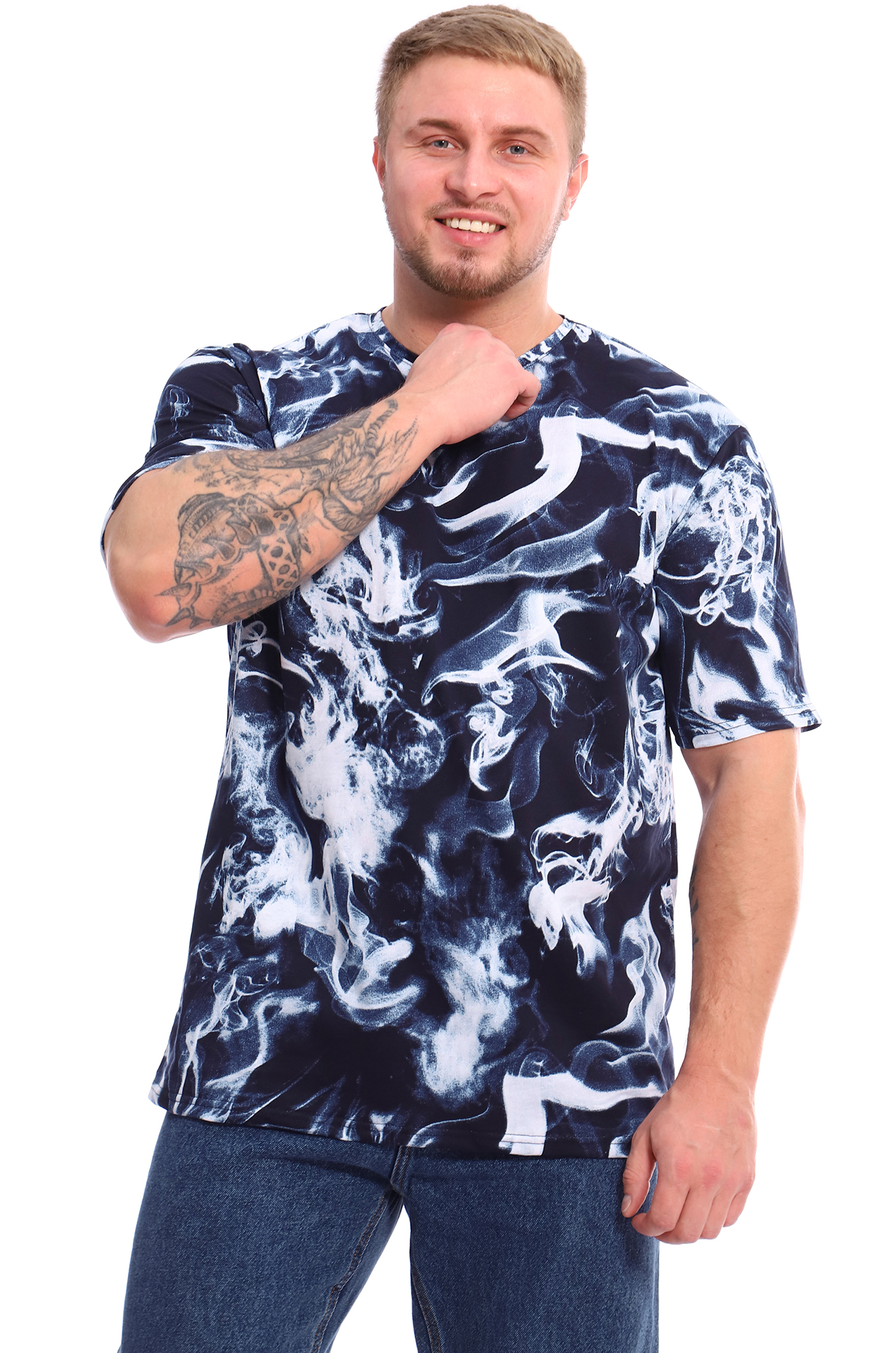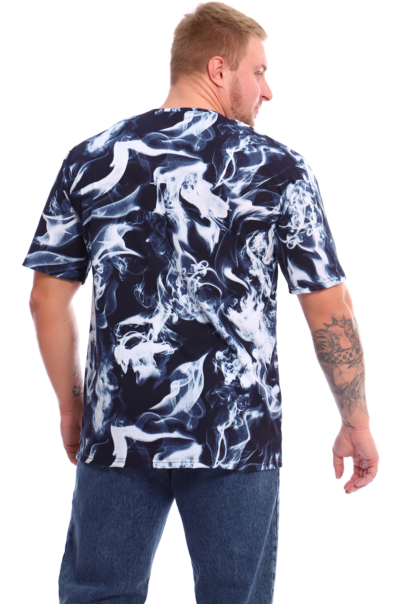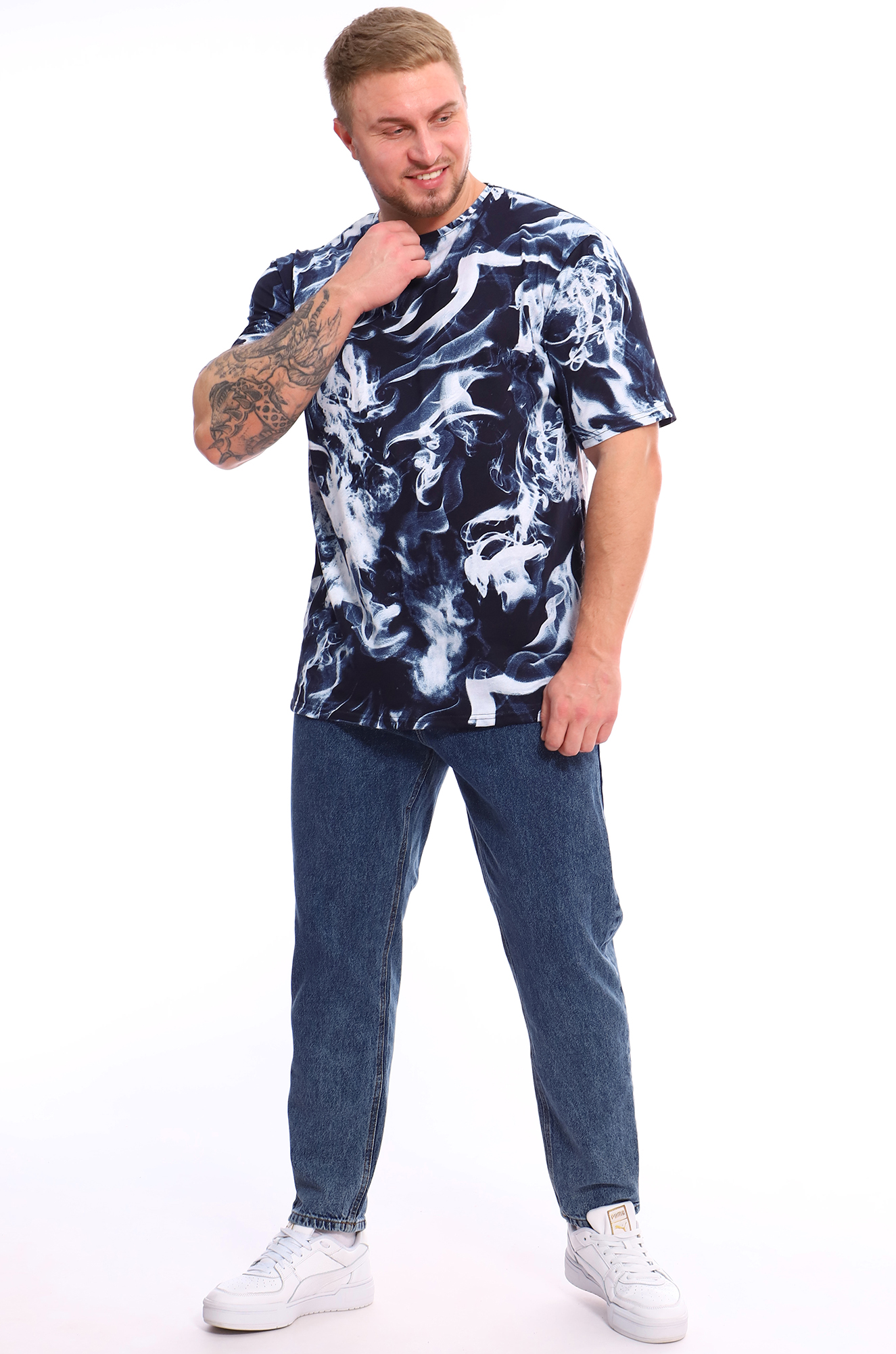 Хлопковая мужская футболка прямого кроя. Необычная и очень эффектная печать набивного рисунка делает модель стильной. Футболка хорошо сочетается с джинсами.