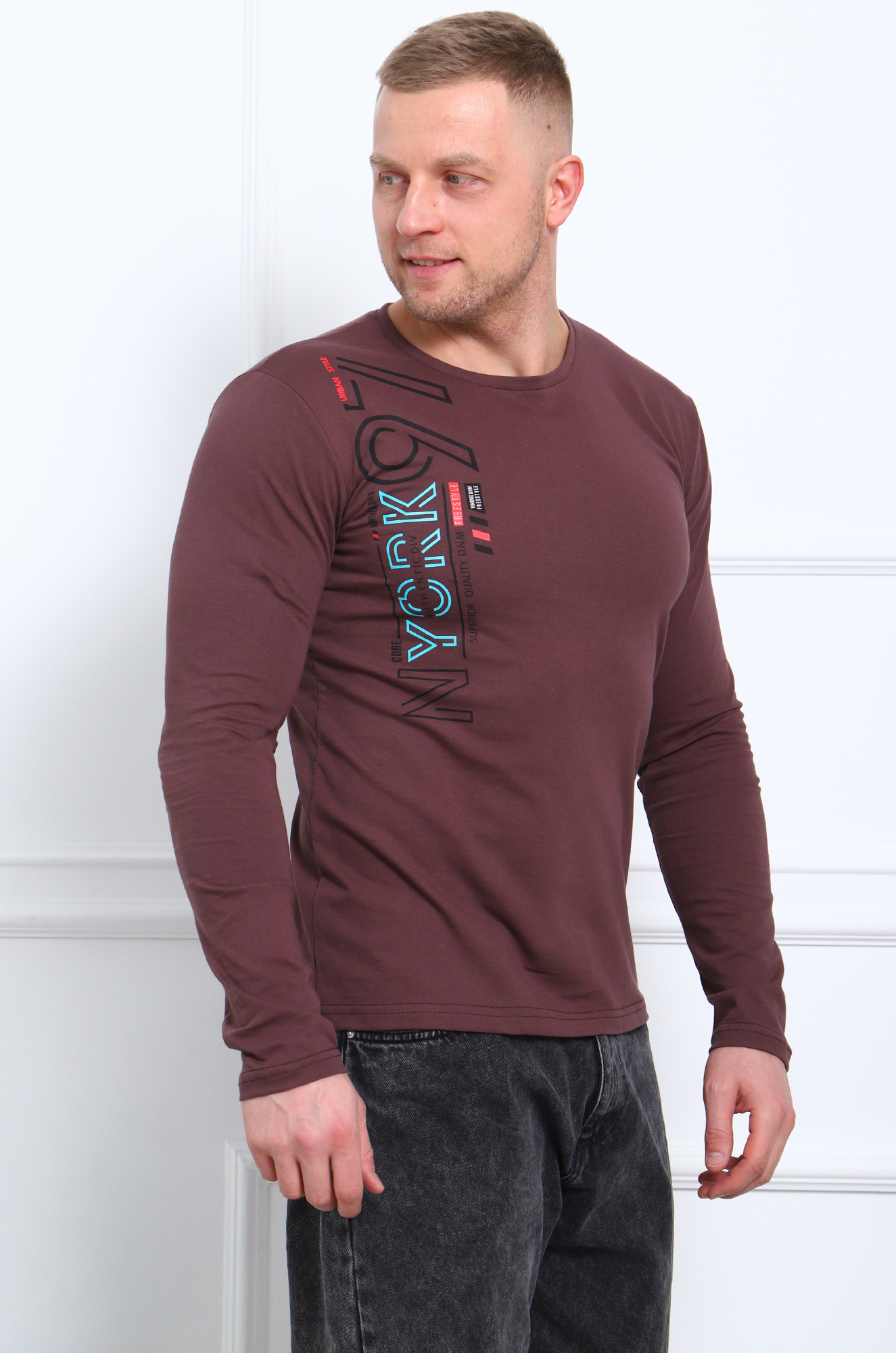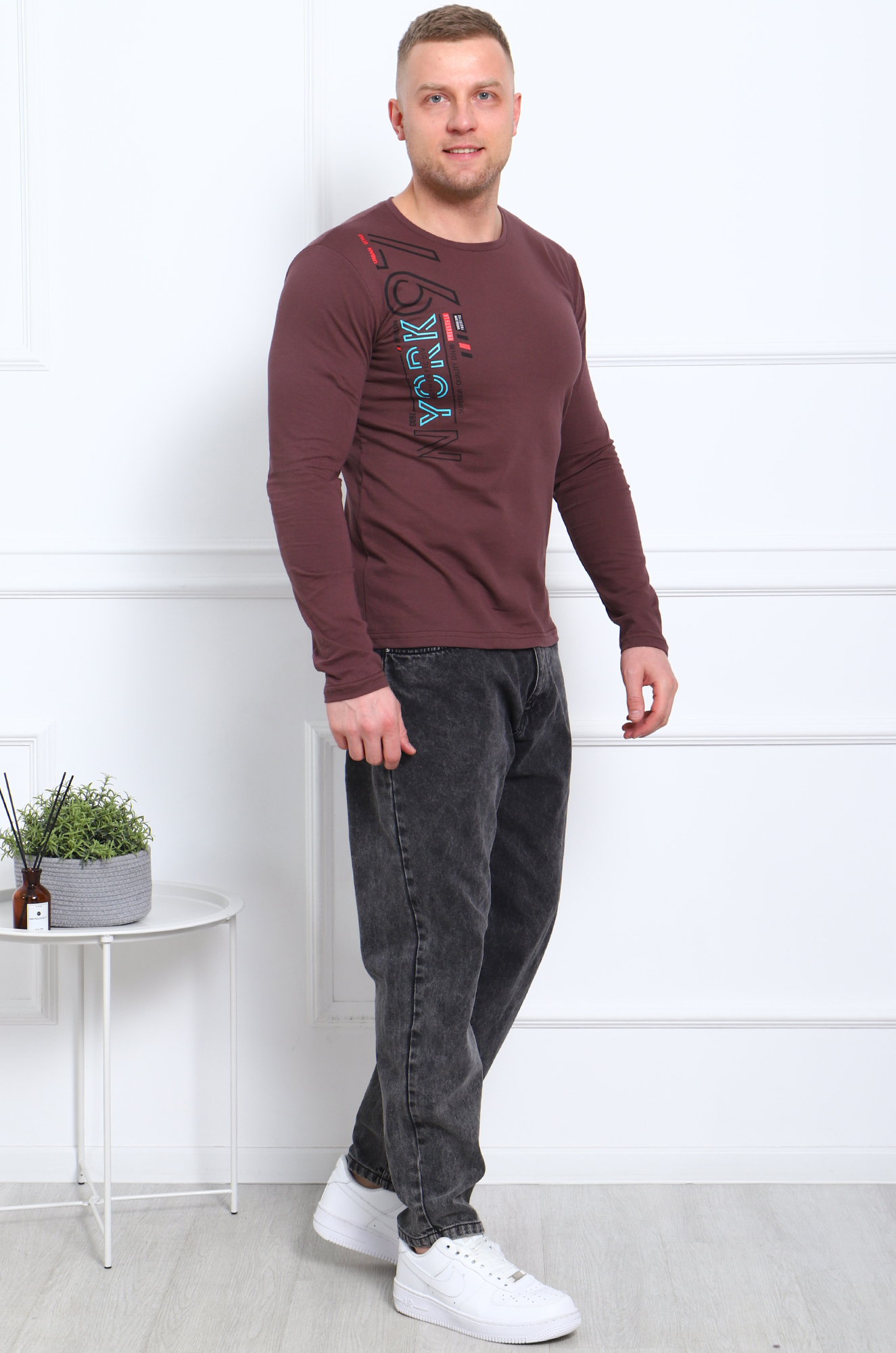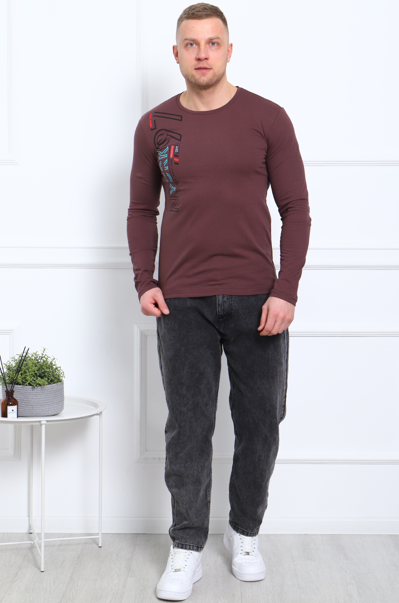 Мужской лонгслив - хлопковая футболка с длинным рукавом - идеальный вариант на прохладную погоду. Стильный печатный принт на полочке.