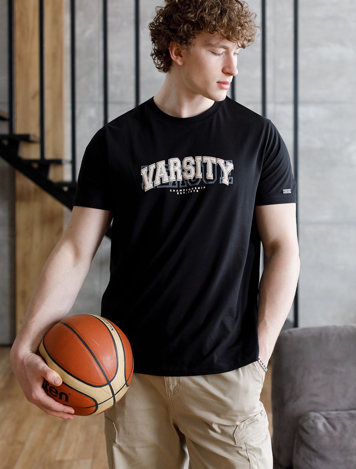 Перевод: "Школьная лига. Чемпионат 1978" надпись выполнена пуффом и красками с устойчивым покрытием. Футболка выполнена из премиального хлопка. Особым преимуществом является наличие эластана в составе изделия. Очень приятная на ощупь и комфортная при носке, футболка сохранит свой безупречный внешний вид в течении долгого времени. Модель дополнена нашивкой из эко-кожи с логотипом VILATTE.