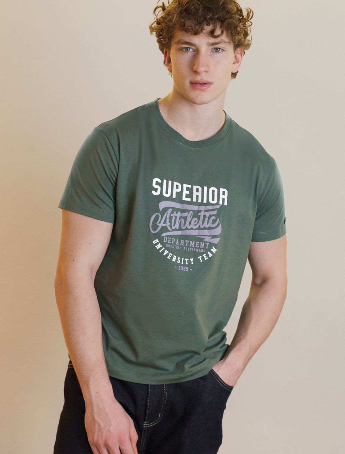 Перевод: "Лучшая студенческая команда 1989. Спортивное отделение. Великие выступления" надпись выполнена пуффом и красками с устойчивым покрытием. Футболка выполнена из премиального хлопка. Особым преимуществом является наличие эластана в составе изделия. Очень приятная на ощупь и комфортная при носке, футболка сохранит свой безупречный внешний вид в течении долгого времени. Модель дополнена нашивкой из эко-кожи с логотипом VILATTE.