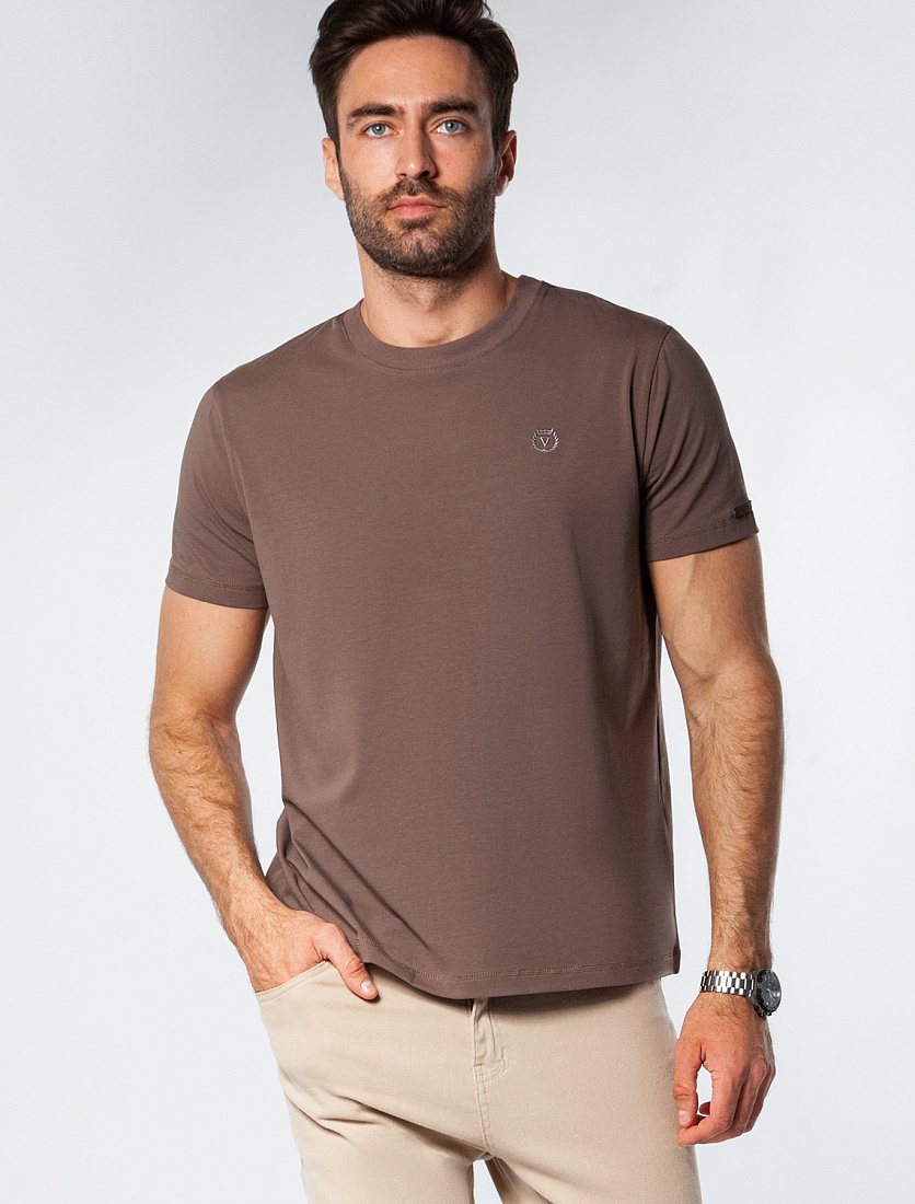 Базовая футболка кофейного цвета из премиального хлопка с эластаном полуприлегающего кроя станет универсальным решением для любого случая. Прямой крой обеспечивает комфортную посадку на любую фигуру, включая большие размеры, подходит как на низкий, так и на высокий рост. Выполненная из натуральной ткани, она обладает дышащими свойствами, а за счет эластичности сохраняет форму даже после длительного ношения и многочисленных сирок.