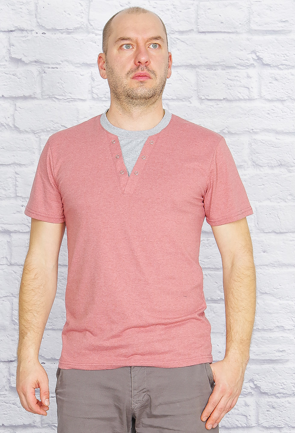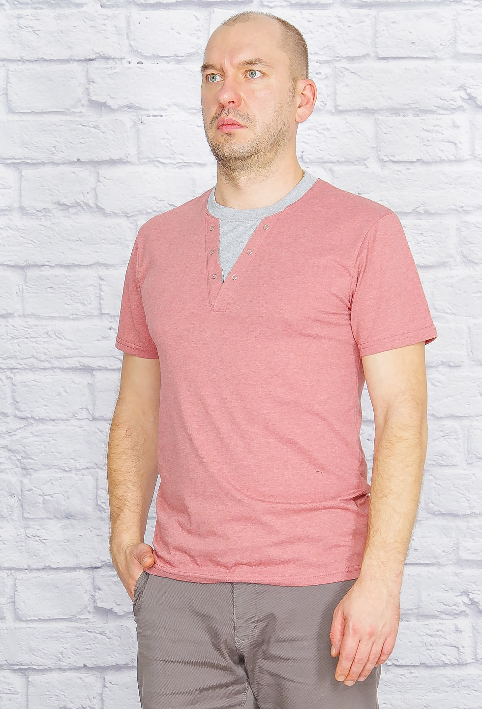 Стильная мужская футболка прямого кроя из кулирки с добавлением пэ нити. Модель сложная - имитирует "двойку", по горловине декоративные клёпки. Хорошо сочетается с джинсами.