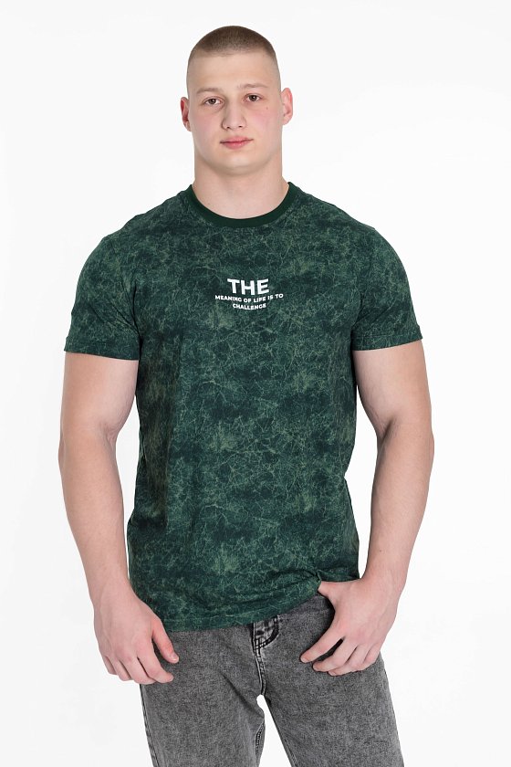 Мужская футболка из хлопкового полотна прекрасно подойдет для создания стильного и удобного образа. Футболка имеет прямой крой, короткий рукав и круглый вырез горловины, обеспечивая комфорт и свободу движений. Спереди нанесён принт.