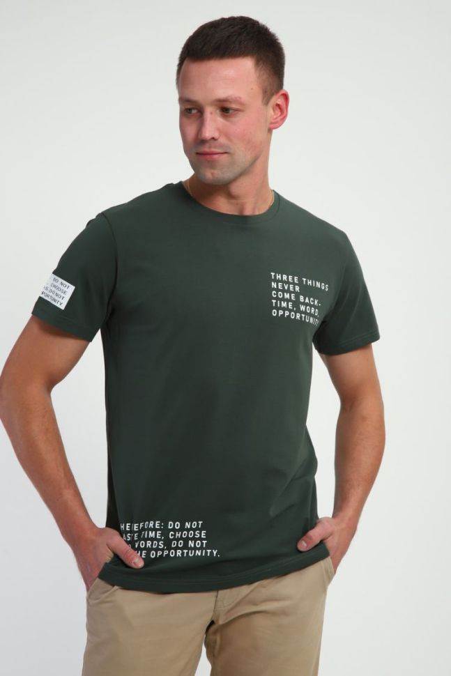 Ткань: кулирка с лайкрой; Состав: 95% хлопок, 5% лайкра; Сезонность: весна, лето; Рукав: короткий рукав; Стиль: повседневный; Праздники: 23 февраля; Застежка: без застежки; Карман: без карманов; Производство: г. Иваново, швейное производство НАТАЛИ; Тип изделия: футболки; Цвет: зеленый