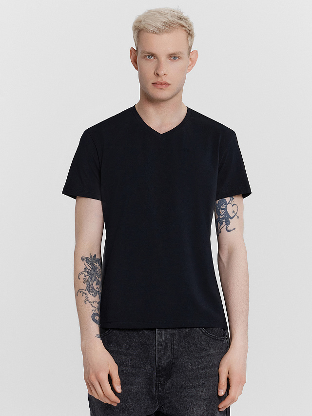 Футболка из трикотажной кулирки прямого силуэта. Длина до середины бедра. Горловина с V-образным вырезом. Рукава короткие. Отличный выбор!