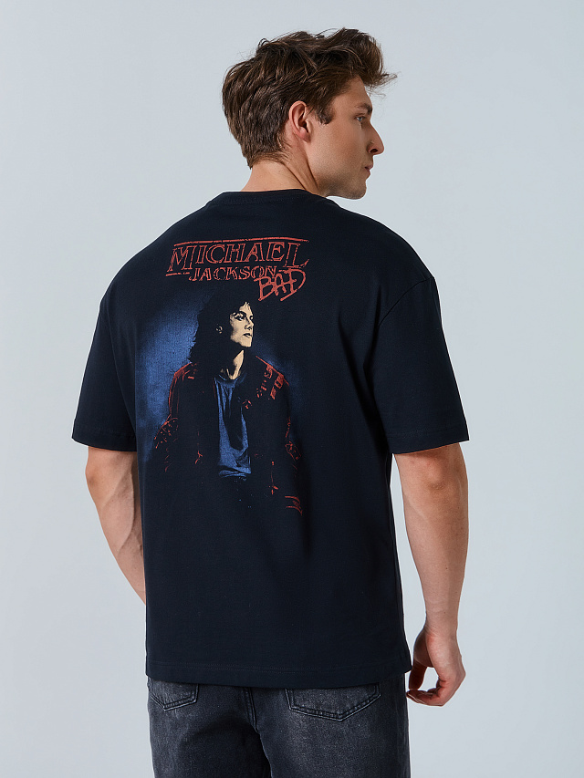 Футболка прямая свободная. Горловина округлой формы обработана обтачкой из рибаны. Шов втачивания обтачки по спинке закрыт бейкой из основного полотна. Линия плеча слегка спущена. Рукава втачные, корткие. Нижние срезы футболки и рукавов обработаны швом вподгибку на 2х шовной плоскошовной машине.