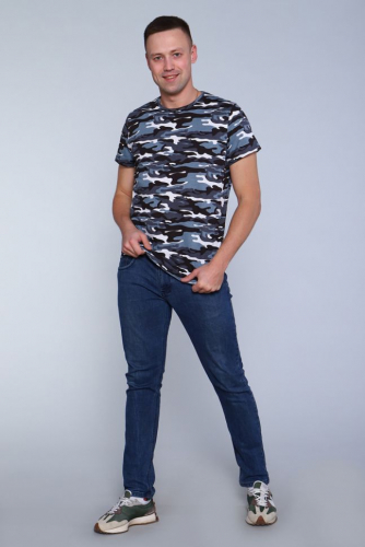 Футболка мужская с втачным рукавом. Данная модель выполнена из трикотажного полотна - кулирка. На полочке присутствует принт. Горловина обработана трикотажным эластичным полотном - рибаной с лайкрой.