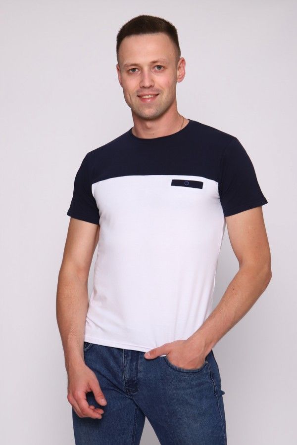Стильная футболка с круглым воротником из тонкой износостойкой ткани кулирка с лайкрой - идеальный вариант для жаркой погоды. Стильная модель с карманом-обманкой. Простая базовая футболка придает стиль с помощью двух цветовых блоков. Приятный к телу трикотаж не скатывается и не даёт усадку.
