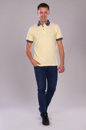 Футболка поло мужская из ткани лакост пике 100% хлопок. Вязаный воротник и манжеты в контрастном сером цвете. Планка выполнена на трех пуговицах с выделенным цветом нижней планки. Футболка очень удобна и комфортна в носке. Подойдет для дома, отдыха и прогулок. Сохраняет цвет и форму после стирки