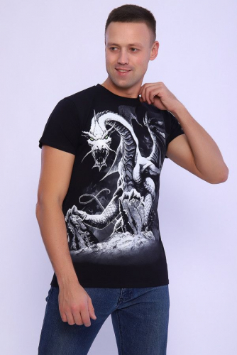 Футболка мужская с оригинальным принтом - дракон символ 2024 года, из качественной кулирки с лайкрой пенье. Базовая футболка с круглой горловиной, коротким втачным рукавом необходимая вещь в мужском гардеробе. Стильный принт, отличный подарок на новый год, футболка для настоящих мужчин.