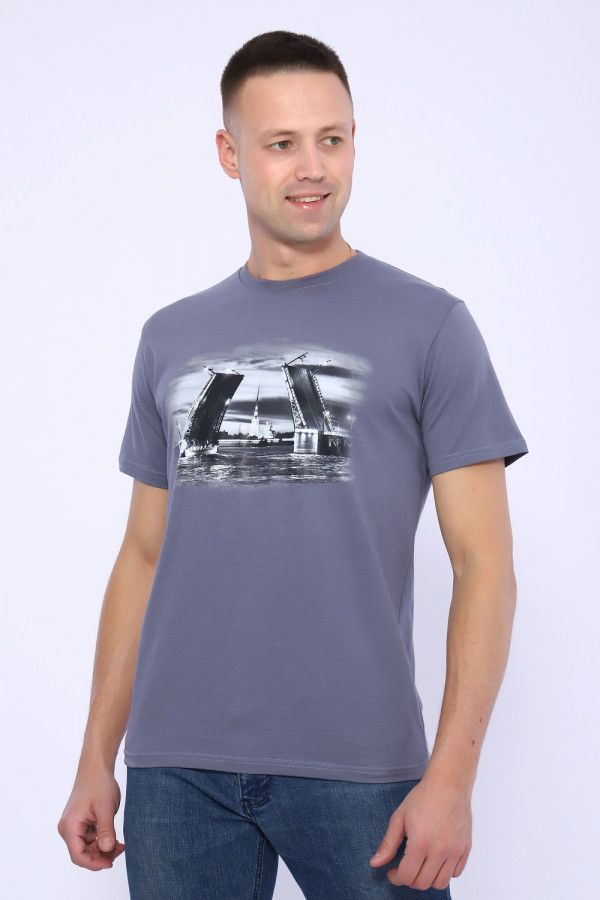 Ткань: кулирка пенье; Состав: 100% хлопок; Сезонность: зима, весна, лето, осень; Рукав: короткий рукав; Стиль: молодежный, повседневный; Производство: г. Иваново, швейное производство НАТАЛИ; Тип изделия: футболки; Цвет: серый