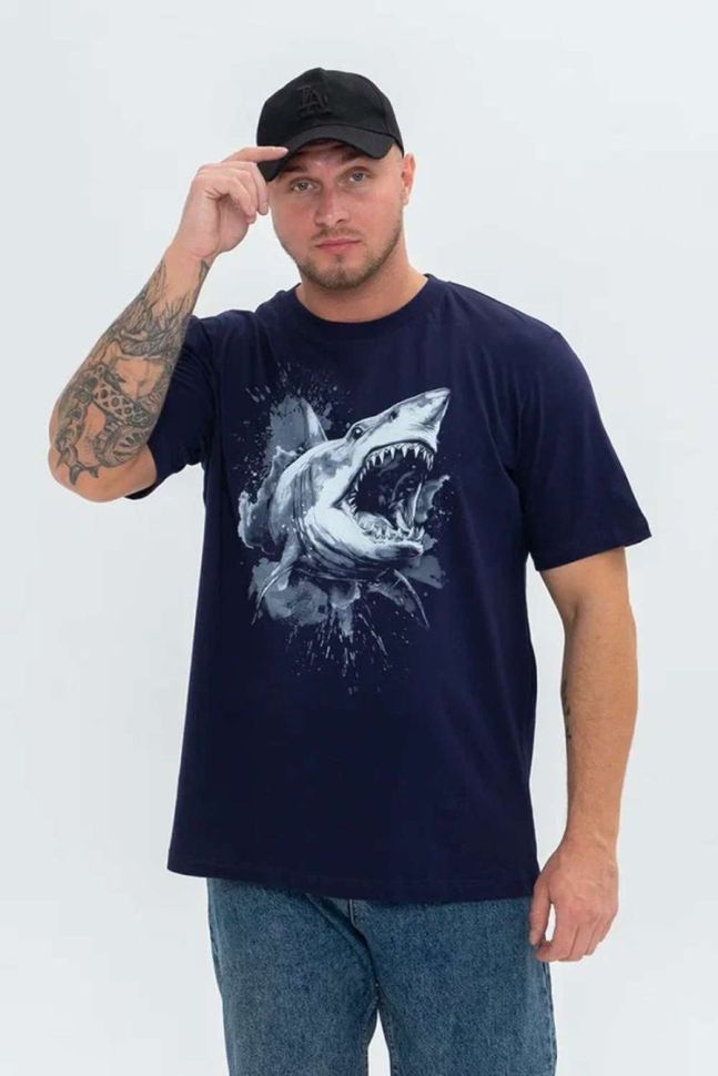 Футболка мужская 8500/1 темно-синий+Акула