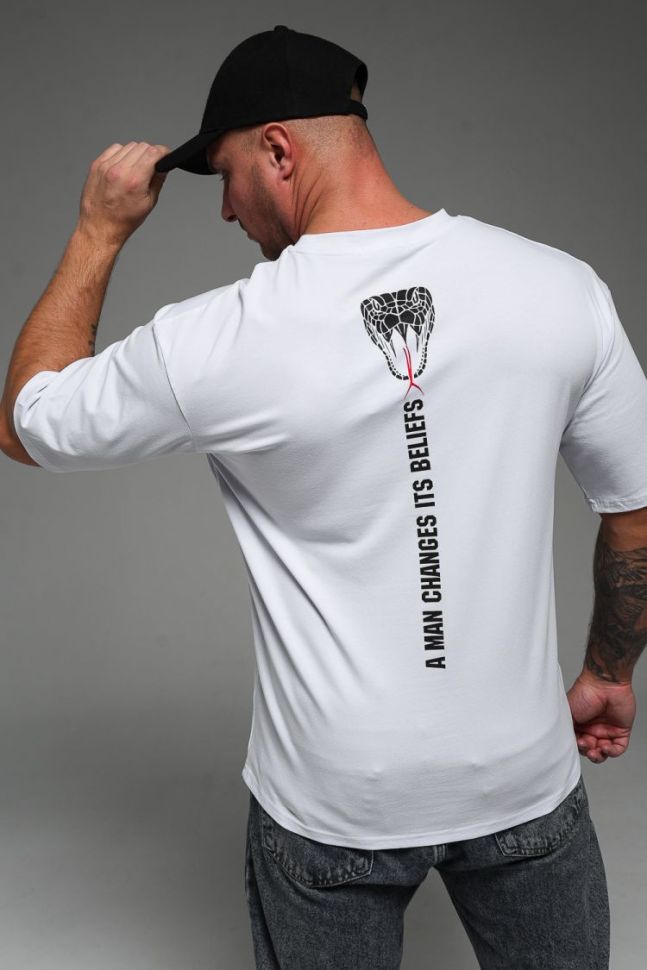 Футболка мужская 8507/1 оверсайз белый+Кобра