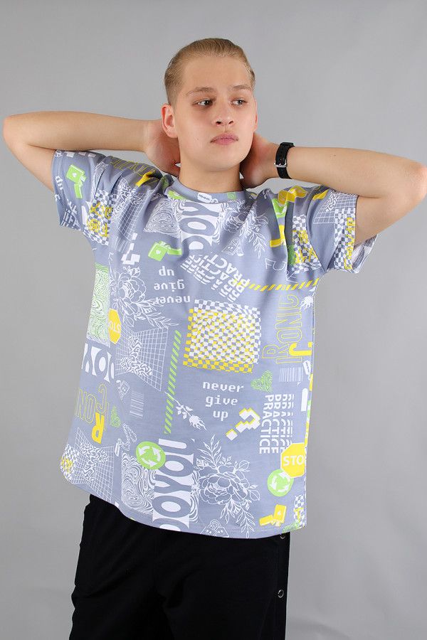 Ткань: футер 2-х нитка; Состав: 92% хлопок, 8% п/э; Сезонность: весна, лето; Рукав: короткий рукав; Стиль: повседневный; Производство: г. Иваново, швейное производство НАТАЛИ; Тип изделия: футболки; Цвет: серый