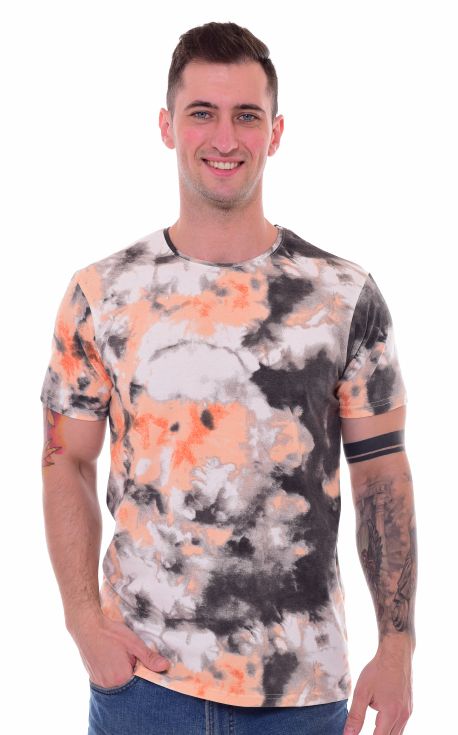 Футболка мужская 9-171 (серый+коралл), Тай-дай