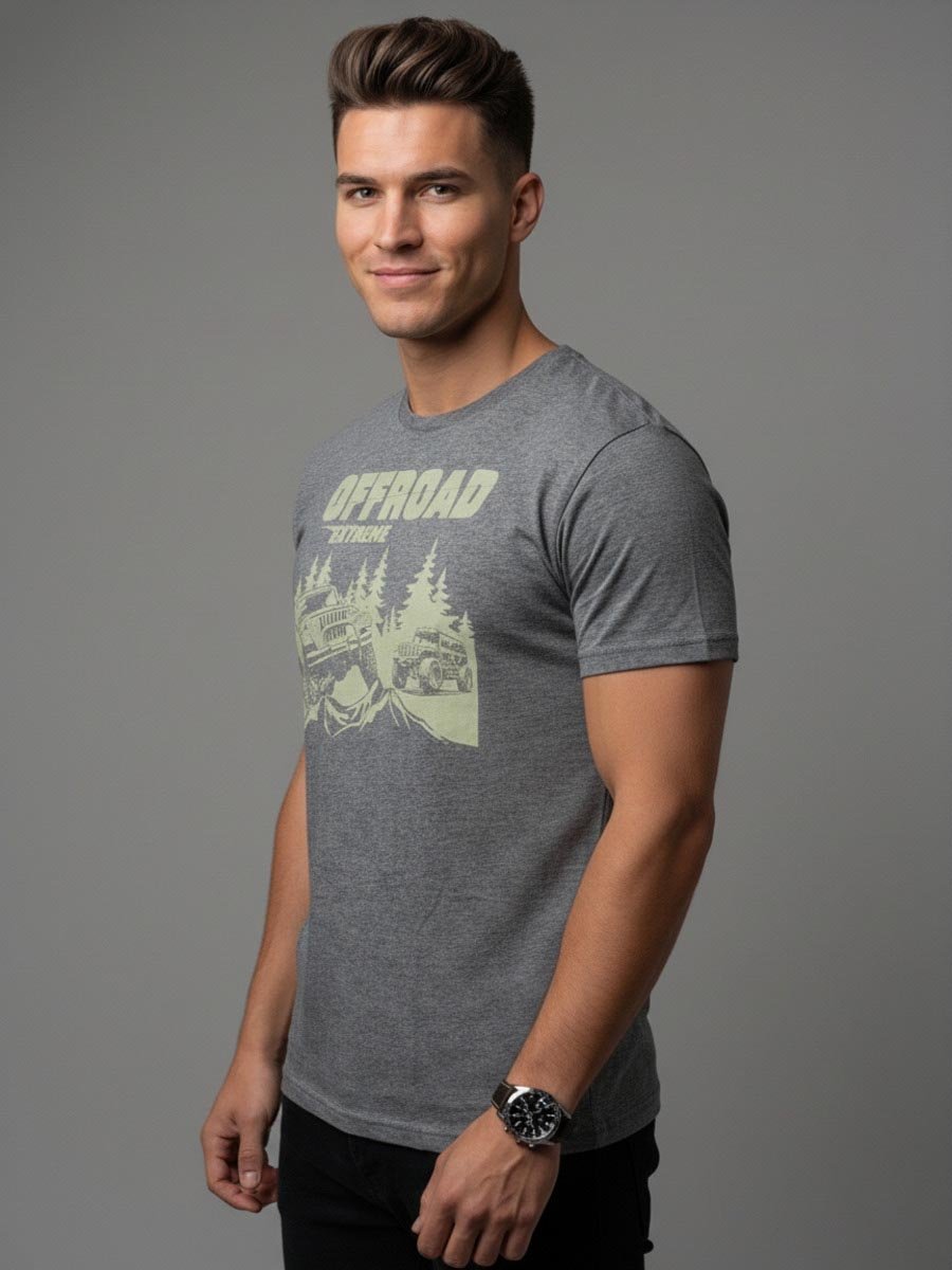 Мужская футболка F5, Regular fit (полуприлегающий силуэт), круглый вырез горловины, короткий рукав. Выполнена из классического трикотажного полотна.