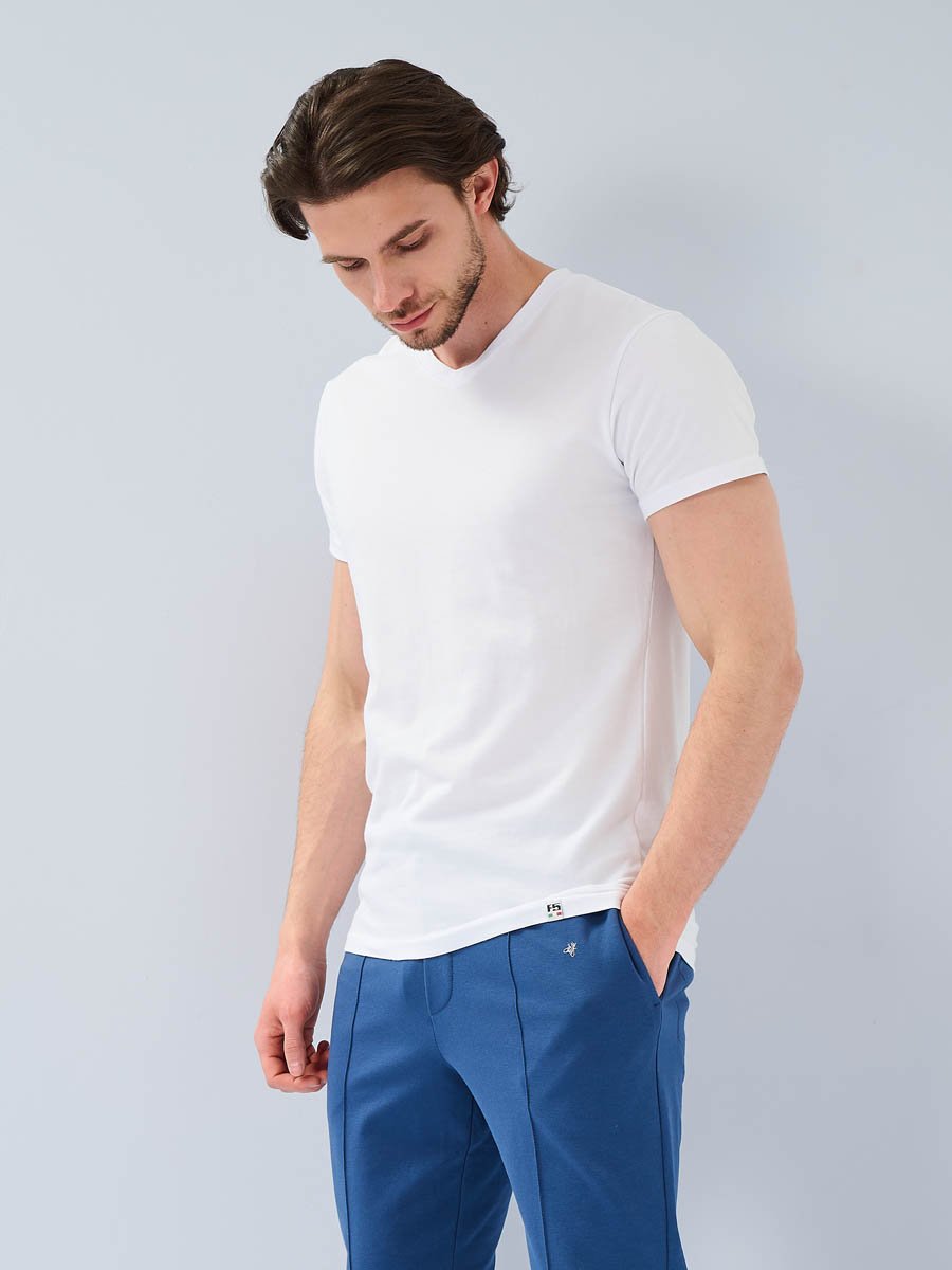 Мужская футболка F5, Slim fit (прилегающий силуэт), V-образный вырез горловины, короткий рукав. Выполнена из  трикотажного полотна стрейч.
