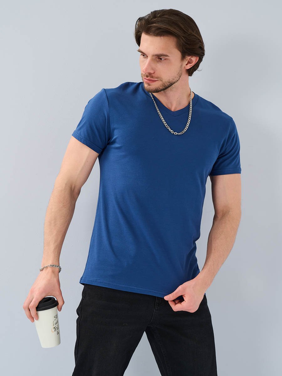 Мужская футболка F5, Slim fit (прилегающий силуэт), V-образный вырез горловины, короткий рукав. Выполнена из  трикотажного полотна стрейч.