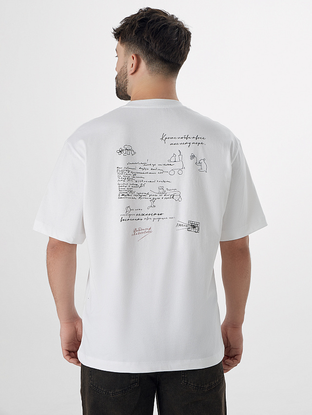 Футболка мужская белая с отрывком из стихотворения Владимира Маяковского - это цитата, которая добавляет образу интеллектуальную глубину и индивидуальность. Каждое слово становится графическим акцентом, который говорит о вашей связи с литературой, смелости мысли и внимании к мощному художественному слову.