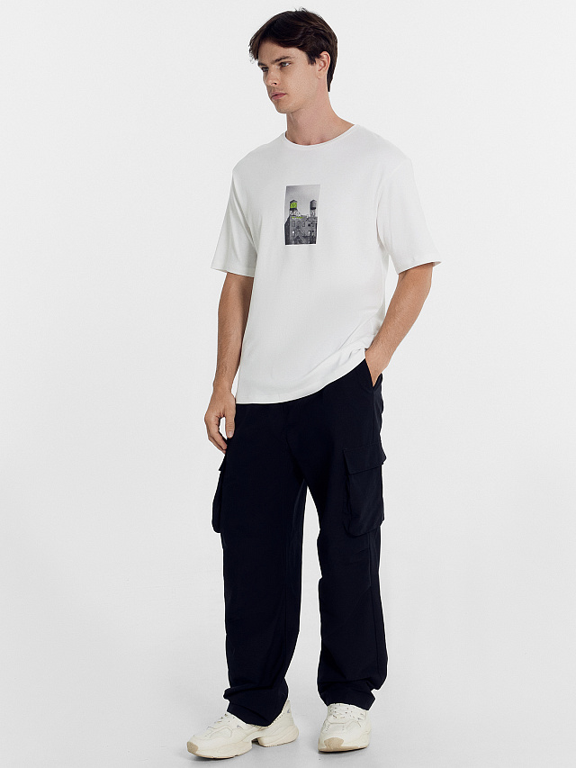 Футболка мужская с печатью из высококачественного 100% хлопка. Длина до середины бедер, свободный прямой силуэт, горловина круглая, линия плеча немного спущена, рукава короткие. Сохраняет свой насыщенный цвет и качество даже после многократных стирок. Обладает хорошей устойчивостью к выцветанию и отлично держит форму. Подойдет для повседневной носки и поможет создать стильный городской образ. Широкий размерный ряд. Рекомендуем!