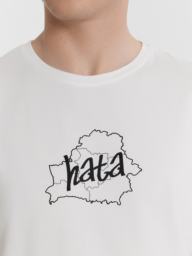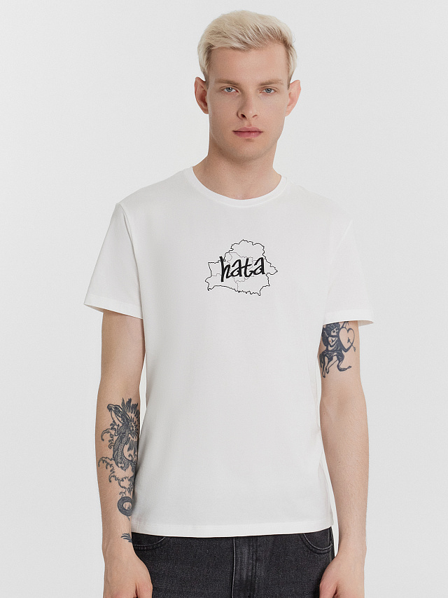 Футболка мужская белая с принтом и надписью "hata"